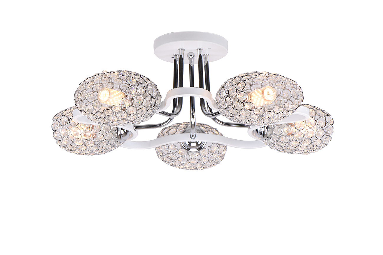 Допускается отличие страны-изготовителя, указанной в характеристиках. Линии производства могут находиться в нескольких государствах. Это не влияет на качество изготовления товара: все заводы данного бренда работают по общим стандартам, а готовые изделия проходят соответствующий контроль.Великобритания Коллекция 1109 ЦветЦвет арматуры Белый Цвет Хром Материал арматуры Металл Материал декора Хрусталь РазмерыВысота (мм) 200 Длина (мм) 520 Ширина (мм) 520 ЭлектрикаКоличество ламп (шт) 5 Цоколь E27 Мощность лампы (Вт) 60 Напряжение (В) 220 Площадь освещения 18 Дополнительная информацияСтепень защиты (IP) IP20 -