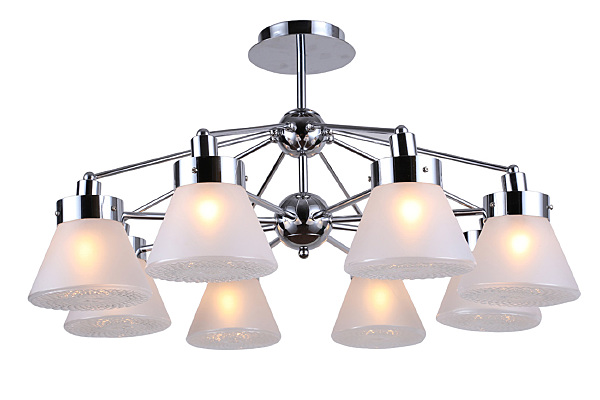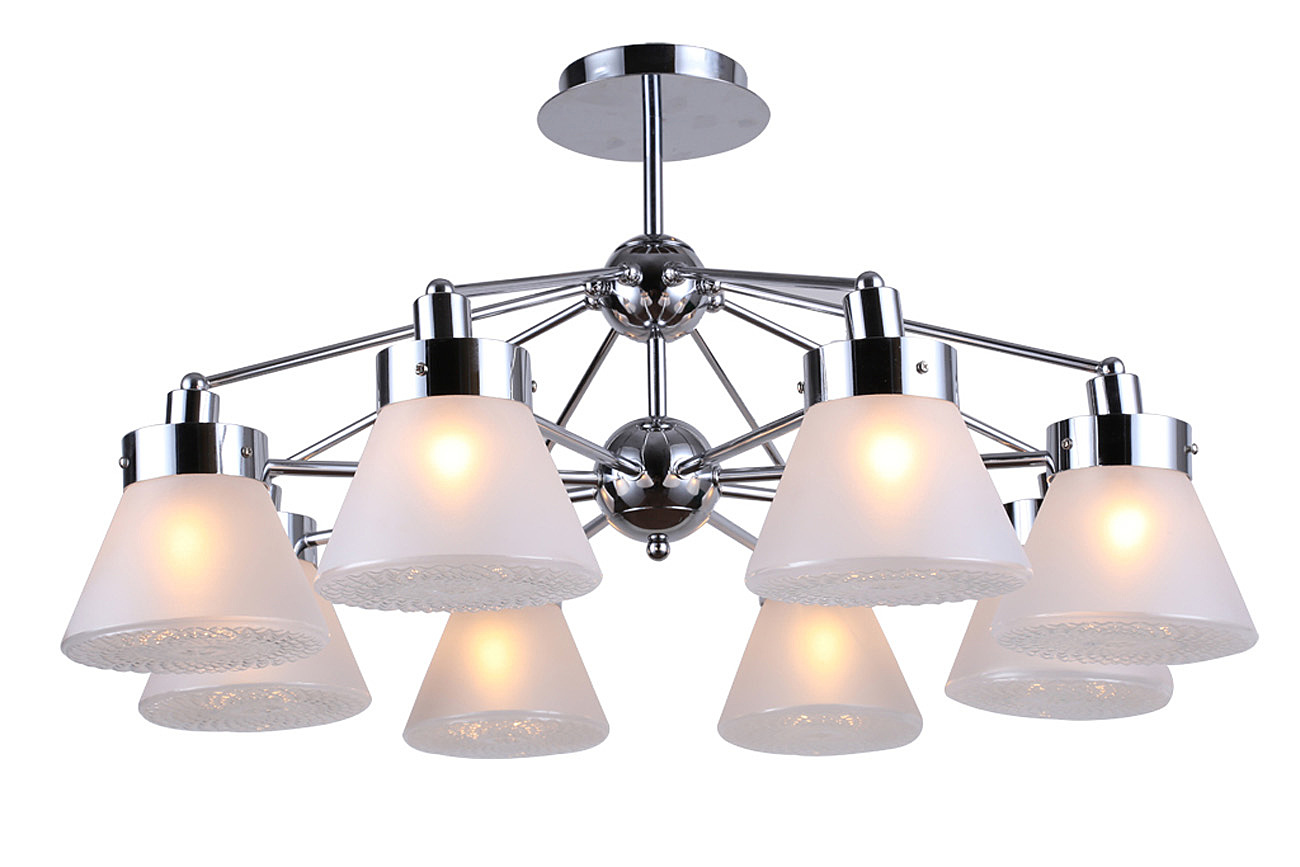 Допускается отличие страны-изготовителя, указанной в характеристиках. Линии производства могут находиться в нескольких государствах. Это не влияет на качество изготовления товара: все заводы данного бренда работают по общим стандартам, а готовые изделия проходят соответствующий контроль.Великобритания Коллекция 641 ЦветЦвет арматуры Хром Цвет Хром Материал арматуры Металл Материал плафона Стекло РазмерыВысота (мм) 370 Длина (мм) 720 Ширина (мм) 720 ЭлектрикаКоличество ламп (шт) 8 Цоколь E14 Мощность лампы (Вт) 40 Напряжение (В) 220 Площадь освещения 12 Дополнительная информацияСтепень защиты (IP) IP20 -