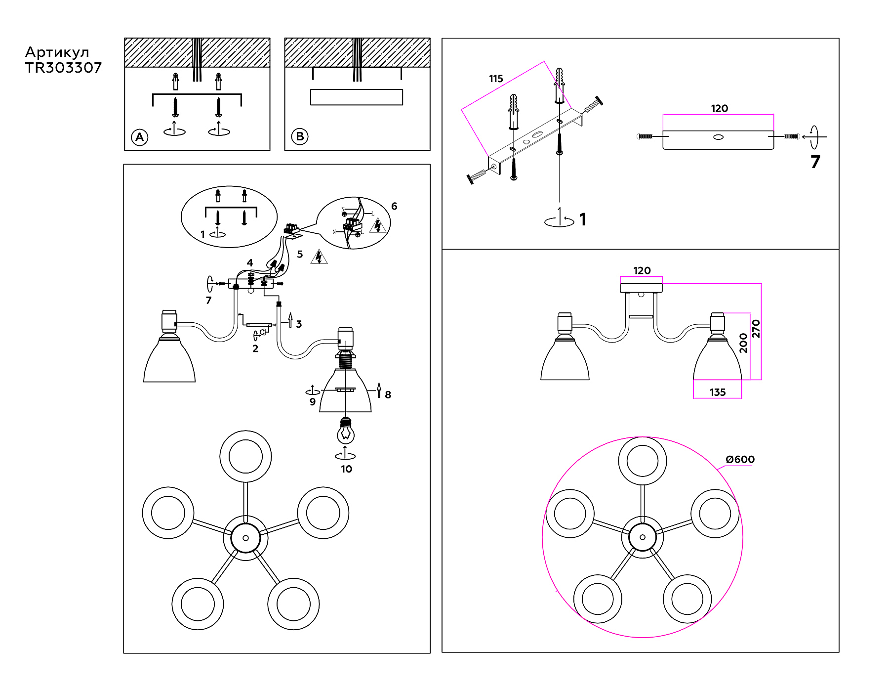 Допускается отличие страны-изготовителя, указанной в характеристиках. Линии производства могут находиться в нескольких государствах. Это не влияет на качество изготовления товара: все заводы данного бренда работают по общим стандартам, а готовые изделия проходят соответствующий контроль.Россия Коллекция Modern ЦветЦвет арматуры Золото, Черный Цвет Черный Материал арматуры Металл Цвет плафона белый матовый Материал плафона Стекло РазмерыВысота (мм) 270 Диаметр (мм) 600 Ширина (мм) 600 ЭлектрикаКоличество ламп (шт) 5 Цоколь E27 Мощность лампы (Вт) 60 Напряжение (В) 220 Площадь освещения 14 Дополнительная информацияСпособ крепления Планка Степень защиты (IP) IP20 -