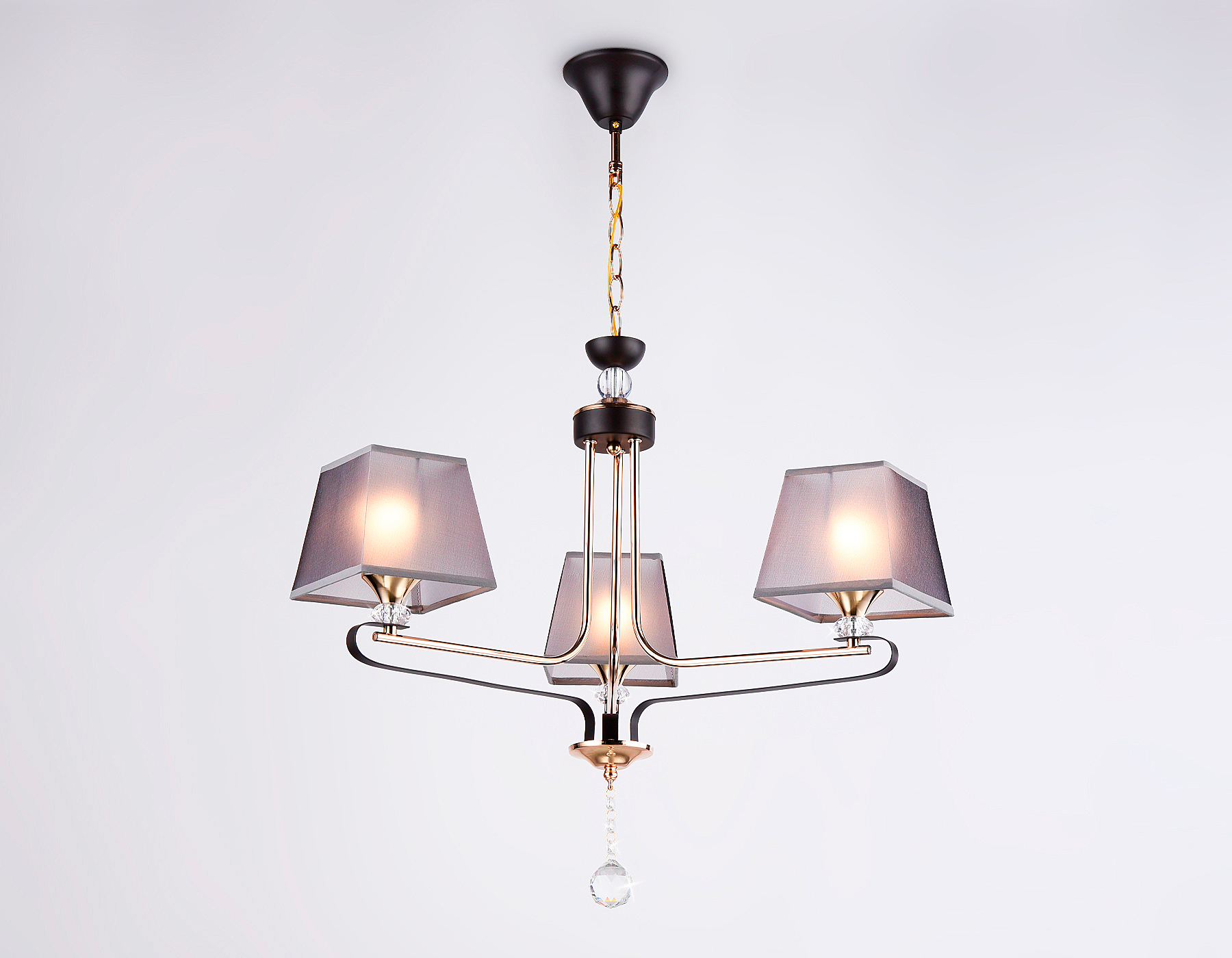 Подвесная люстра с абажурами из коллекции TRADITIONAL. Модель TR4614 представлена в классическом стиле. Люстра выполнена из тканевых плафонов серого цвета и декорирована превосходным прозрачным хрусталем, каркас изготовлен из металла золотого и кофейного цвета. Для данной модели подойдут лампы с цоколем Е27. Люстра будет прекрасным дополнением в любом помещении.