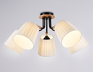 Подвесной светильник из коллекции TRADITIONAL. Модель TR4733 представлена в стиле неоклассика. Светильник выполнен из черного металлического каркаса и тканевых белых плафонов с деревянным декором. Для данной модели подойдут лампы с цоколем Е27. Светильник будет прекрасным дополнением в любом помещении.