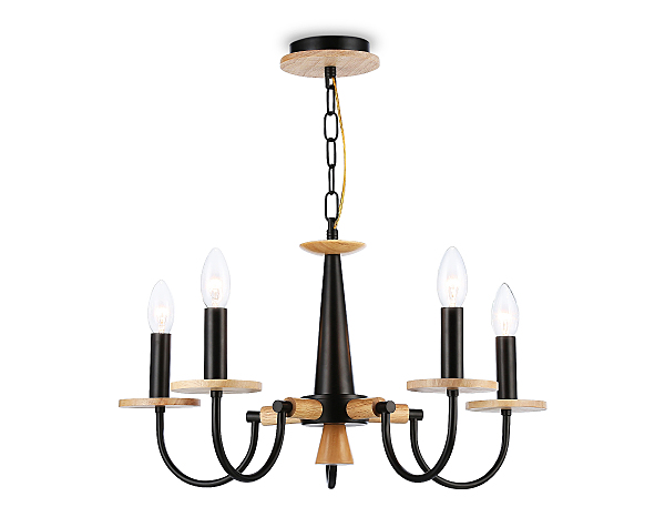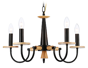 Подвесной светильник из коллекции TRADITIONAL. Модель TR9593 представлена в современном стиле неоклассика. Светильник выполнен из черного металлического каркаса и декора из натурального дерева.. Для данной модели подойдут лампы с цоколем Е14.