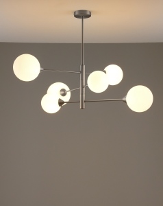 Допускается отличие страны-изготовителя, указанной в характеристиках. Линии производства могут находиться в нескольких государствах. Это не влияет на качество изготовления товара: все заводы данного бренда работают по общим стандартам, а готовые изделия проходят соответствующий контроль.Италия Коллекция Molecule ЦветЦвет арматуры матовый хром Цвет Хром Материал арматуры Стекло, Металл Цвет плафона Белый Материал плафона Стекло РазмерыВысота (мм) 590 Ширина (мм) 790 Глубина (мм) 390 ЭлектрикаКоличество ламп (шт) 6 Цоколь G9 Тип лампы Светодиодная, Накаливания Лампочки в комплекте нет Мощность лампы (Вт) 5 Площадь освещения 8 Дополнительная информацияСпособ крепления на планку Вес (Кг) 2.05 -
