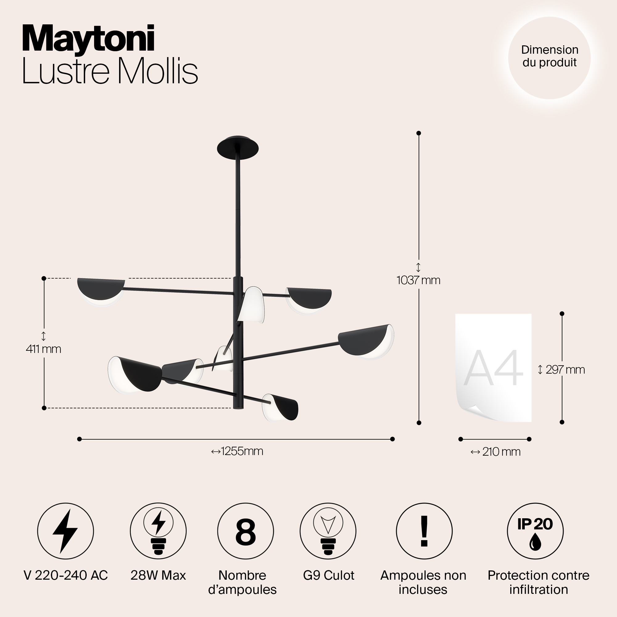 Допускается отличие страны-изготовителя, указанной в характеристиках. Линии производства могут находиться в нескольких государствах. Это не влияет на качество изготовления товара: все заводы данного бренда работают по общим стандартам, а готовые изделия проходят соответствующий контроль.Германия Коллекция Mollis ЦветЦвет арматуры Черный Цвет Черный Материал арматуры Металл Цвет плафона Черный Материал плафона Акрил РазмерыВысота (мм) 1037 Длина (мм) 1250 Высота минимальная (мм) 90 Ширина (мм) 1250 Диаметр абажура-плафона 400*400 Высота абажура-плафона 130 ЭлектрикаКоличество ламп (шт) 8 Цоколь G9 Мощность лампы (Вт) 28 Напряжение (В) 220 Дополнительная информацияСпособ крепления Планка Степень защиты (IP) IP20 Вес (Кг) 4,5 -
