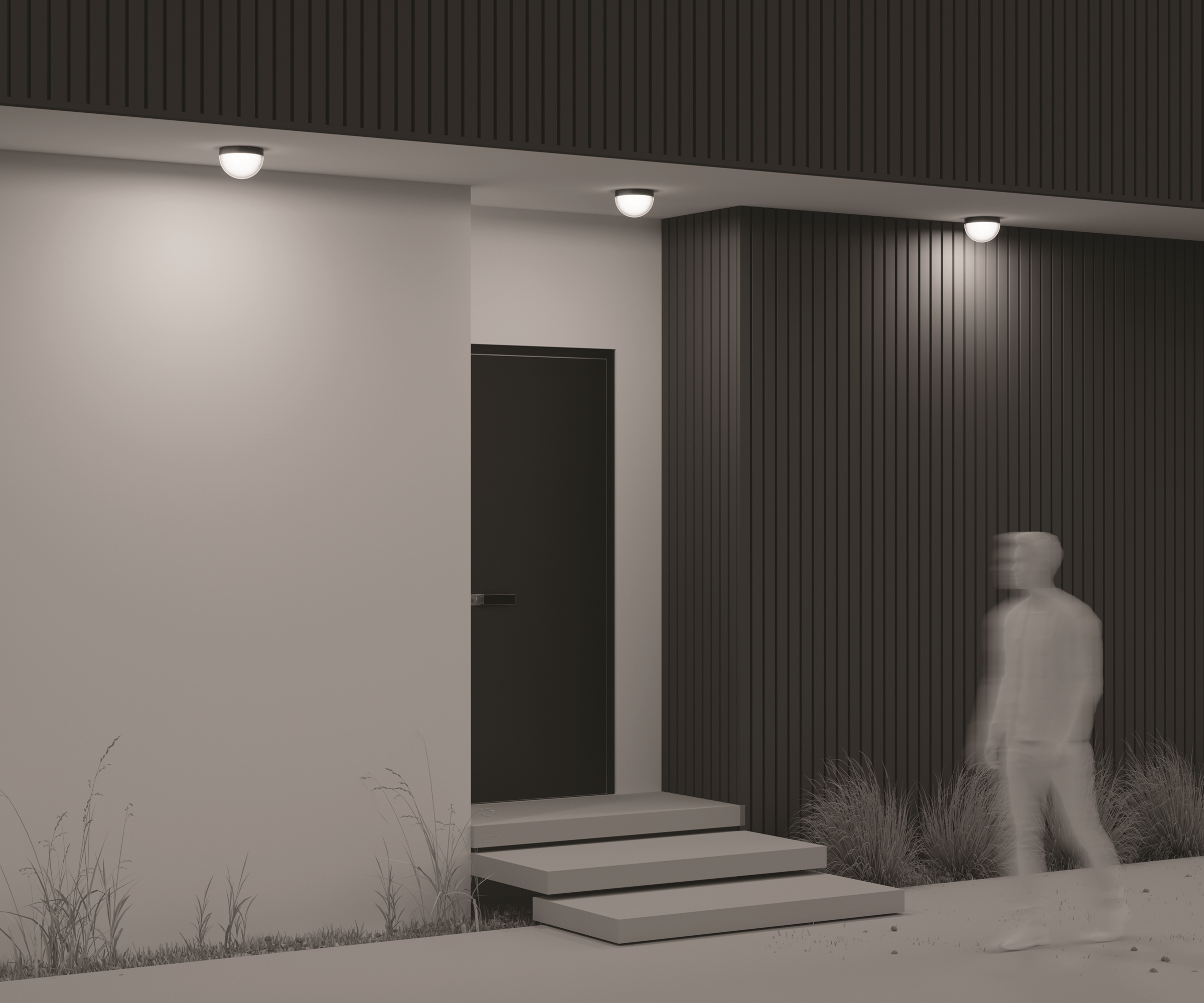 Материал корпуса - алюминий, цвет - графит. Двойной рассеиватель. Внутренний - белый матовый акрил, верхний - прозрачный пластик. LED-источник света, цветовая температура - 3000К. Степень защиты IP54. Подходит для использования как на улице, так и внутри помещения.