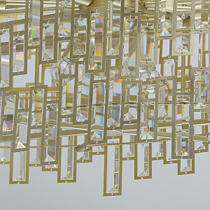 Люстра из коллекции "Монарх" отличается нетривиальным дизайном, который будет эффектно смотреться как в классических интерьерах, так и в современной лофт-обстановке. Основание светильника выполнено из металла матового золотого оттенка и подчеркнуто богатым декором из крупного прозрачного хрусталя, который наполнит обстановку волшебными переливами света. Именно сочетание оригинального дизайна и роскошного декора делает модель практически универсальным решением для разных стилей в интерьере.