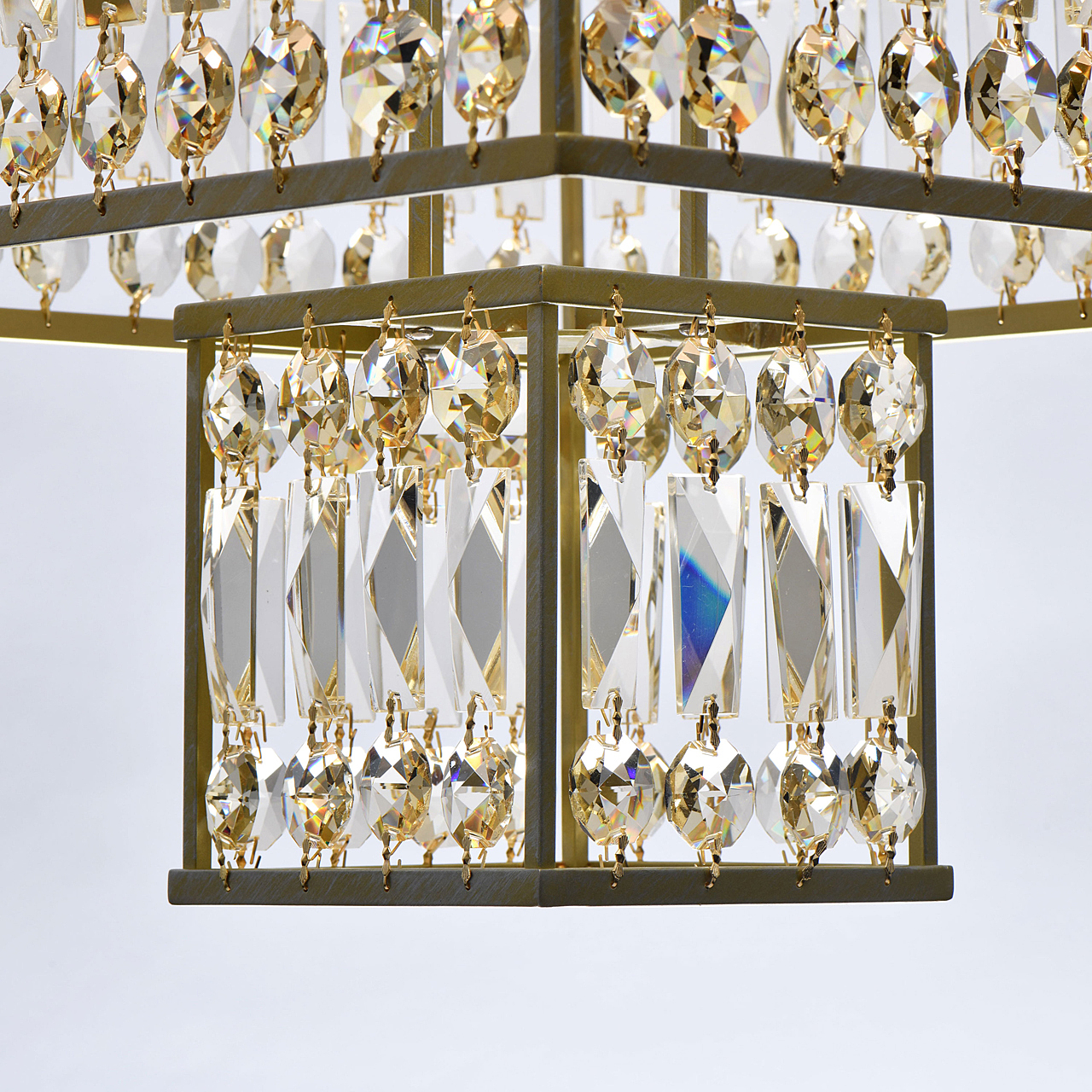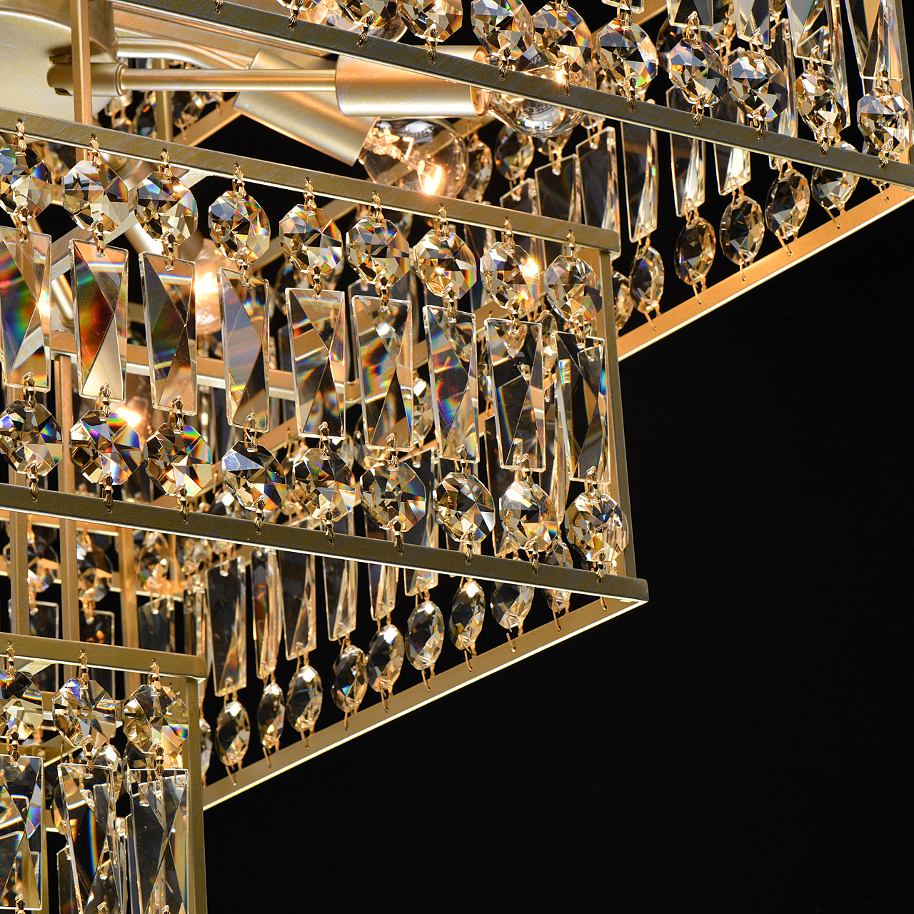 Оригинальный дизайн коллекции для ценителей дизайнерского света. Светильник декорирован хрусталем в огранке розового золота. Открытые источники света обеспечивают яркое освещение. Полная семья решает задачи общего и зонального освещения.