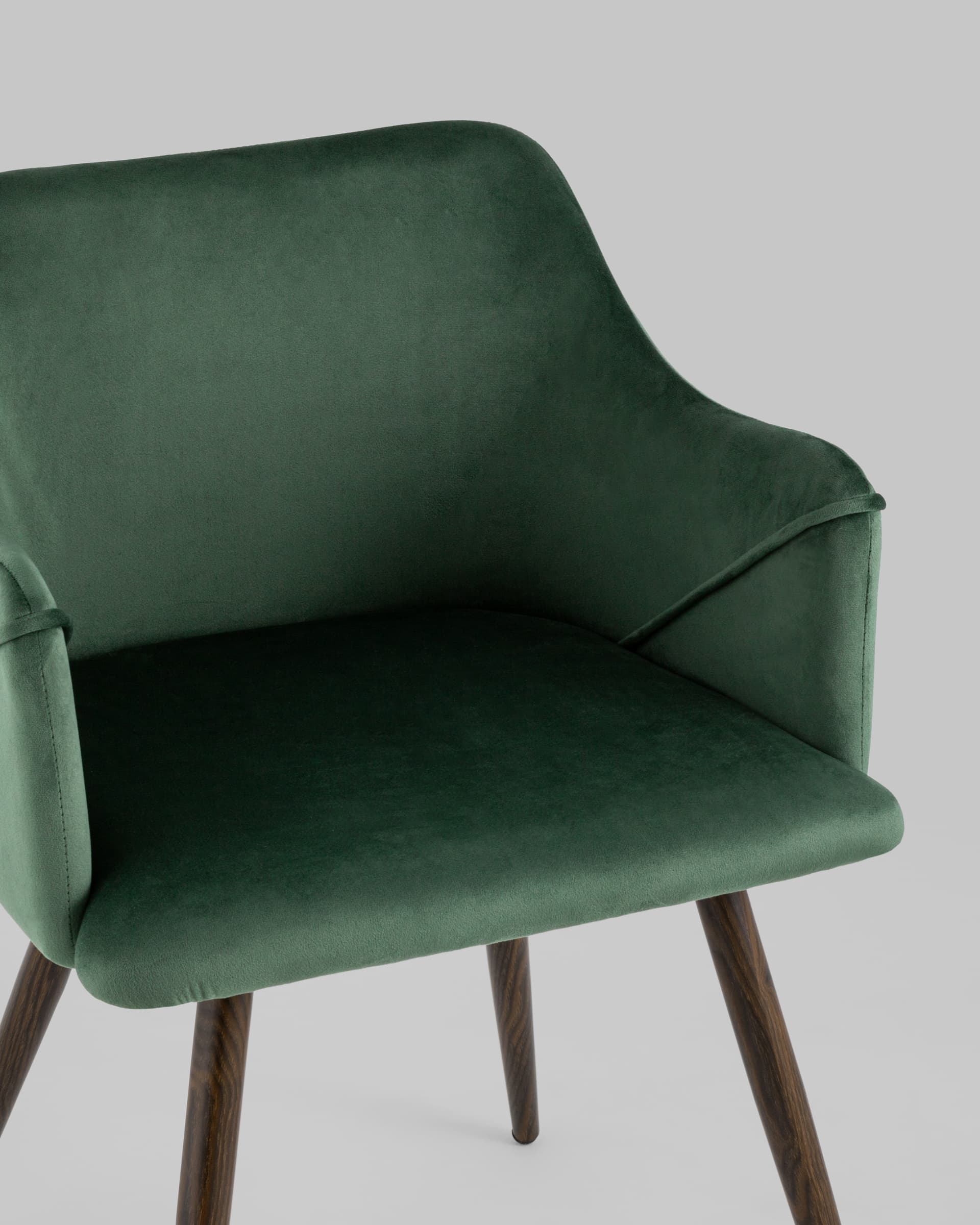 Комплект из двух стульев Монарх зеленый, широкая эргономичная спинка, удобные подлокотники, обивка плотная ткань, стальные ножки с принтом под дерево 2 шт