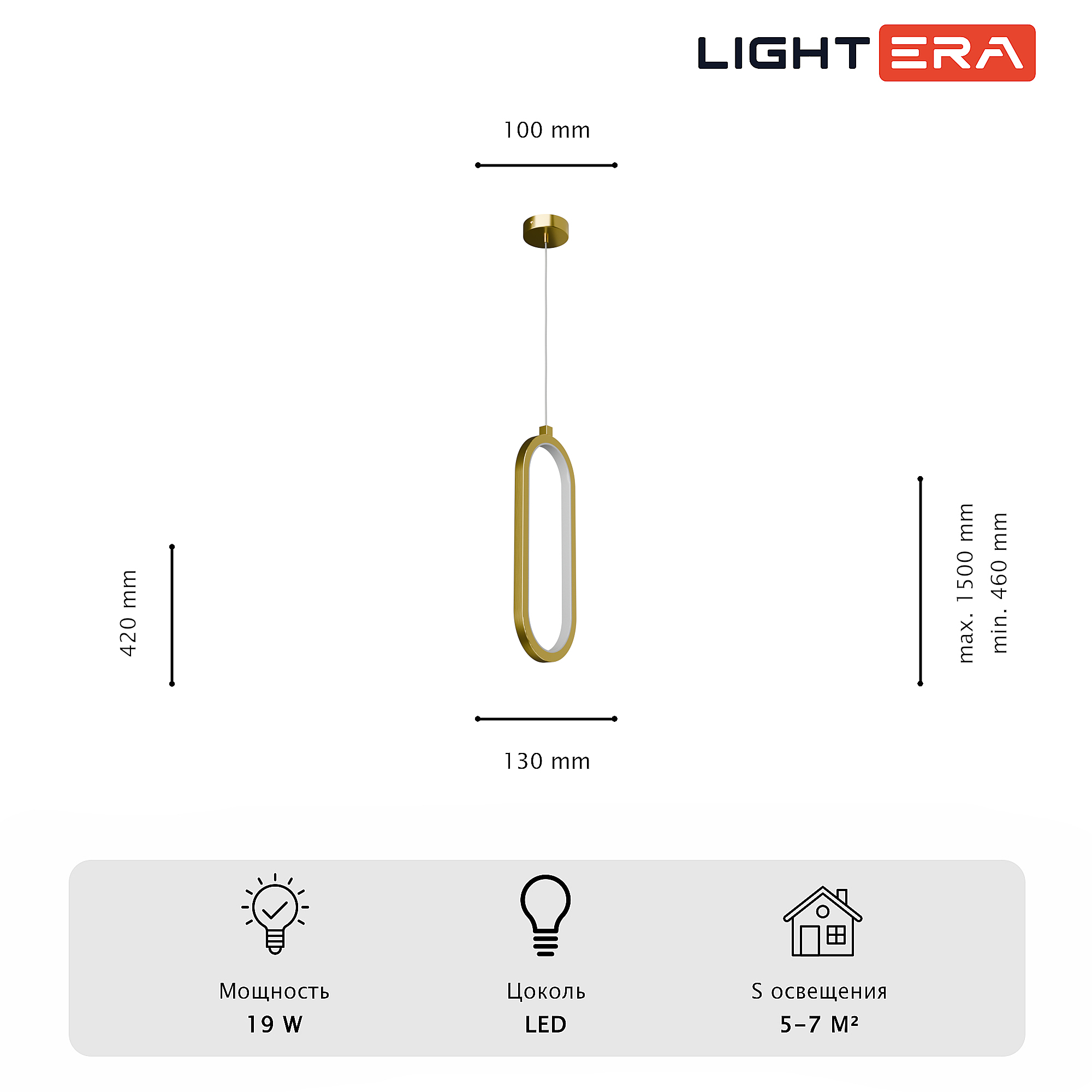Допускается отличие страны-изготовителя, указанной в характеристиках. Линии производства могут находиться в нескольких государствах. Это не влияет на качество изготовления товара: все заводы данного бренда работают по общим стандартам, а готовые изделия проходят соответствующий контроль.Китай Коллекция Mondsee ЦветЦвет арматуры золотой Цвет Золото Материал арматуры Металл Цвет плафона золотой Материал плафона Металл РазмерыВысота (мм) 2000 Высота минимальная (мм) 460 Ширина (мм) 130 Диаметр основания 100 ЭлектрикаКоличество ламп (шт) 1 Цоколь LED Тип лампы Светодиодная Мощность лампы (Вт) 19 Общая мощность (Вт) 19 Напряжение (В) 220 Цветовая температура 3000 Дополнительная информацияСпособ крепления Планка Степень защиты (IP) IP20 Техническая оссобеность Полностью светодиодная Тип подвеса На тросах Количество подвесов Одиночный подвес -