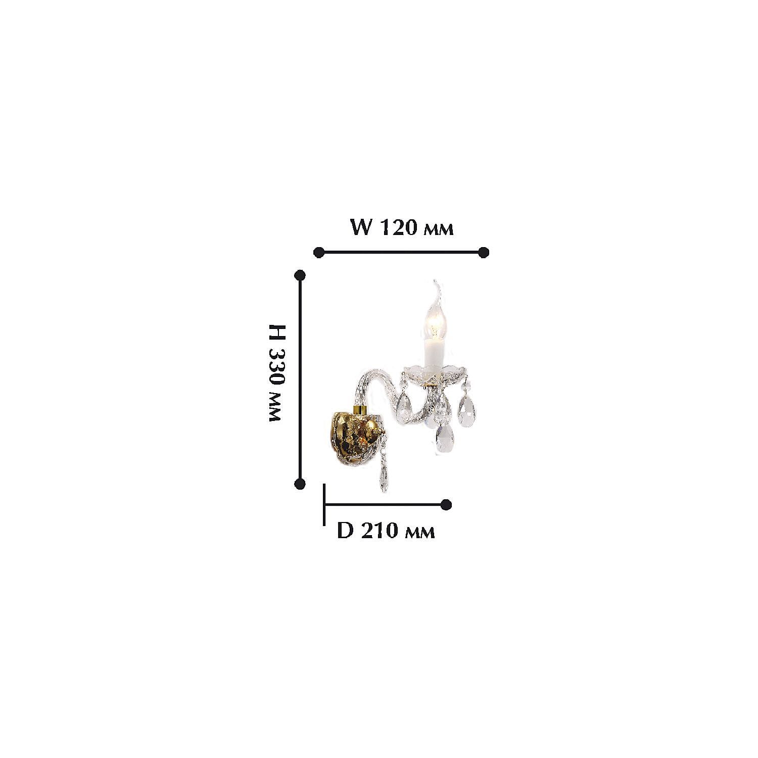 Допускается отличие страны-изготовителя, указанной в характеристиках. Линии производства могут находиться в нескольких государствах. Это не влияет на качество изготовления товара: все заводы данного бренда работают по общим стандартам, а готовые изделия проходят соответствующий контроль.Германия Коллекция Monreal ЦветЦвет арматуры Золото Цвет Прозрачный Материал арматуры Металл, Стекло Материал декора Хрусталь, Стекло РазмерыВысота (мм) 330 Длина (мм) 120 Ширина (мм) 210 ЭлектрикаКоличество ламп (шт) 1 Цоколь E14 Мощность лампы (Вт) 40W Напряжение (В) 220 Дополнительная информацияВес (Кг) 0,8 -