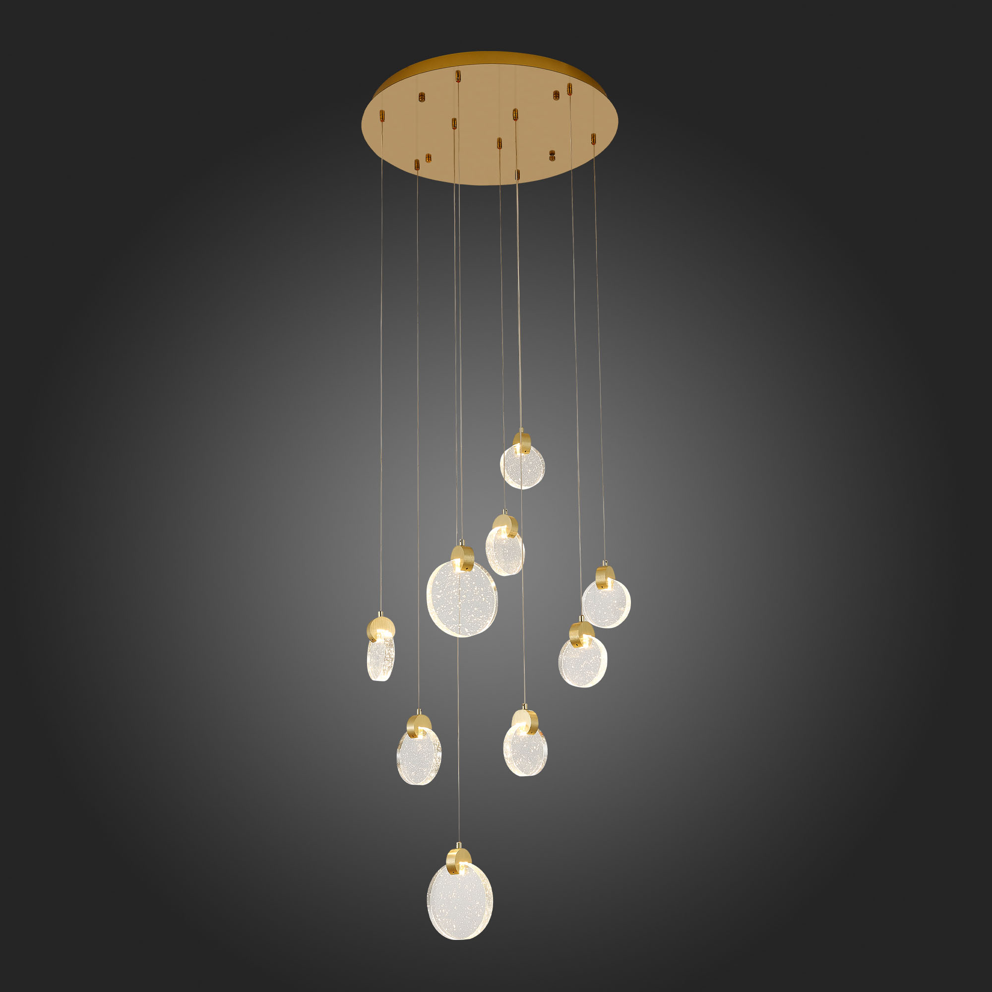 Светильники Montecelio привлекают своим футуристичным дизайном. Свет от диодов преломляется, проходя через диски из хрустального стекла с множеством пузырьков внутри. Разнообразие форм светильников позволяет подобрать оптимальный вариант для любой зоны помещения. Все подвесные светильники в коллекции регулируются по высоте, что позволяет создавать индивидуальные композиции. MONTECELIO