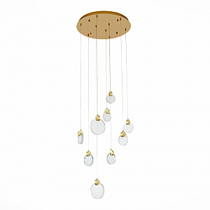 Допускается отличие страны-изготовителя, указанной в характеристиках. Линии производства могут находиться в нескольких государствах. Это не влияет на качество изготовления товара: все заводы данного бренда работают по общим стандартам, а готовые изделия проходят соответствующий контроль.Италия Коллекция Montecelio ЦветЦвет арматуры золотистый Цвет Золото Материал арматуры Металл Цвет плафона прозрачный, с пузырьками воздуха Материал плафона Хрусталь РазмерыВысота (мм) 1500 Диаметр (мм) 500 Ширина (мм) 500 ЭлектрикаКоличество ламп (шт) 9 Цоколь LED Тип лампы Светодиодная Лампочки в комплекте Лампы в комплекте Мощность лампы (Вт) 3 Общая мощность (Вт) 27 Световой поток 2025 Цветовая температура теплый (3000k) Площадь освещения 9 Дополнительная информацияСпособ крепления Планка -