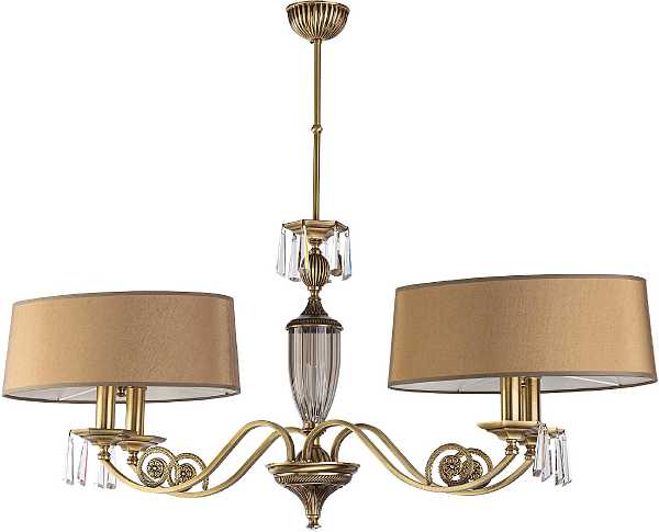 Продолговатая люстра MON-ZWL-4 (P/A) на четыре источника света - стильный вариант для вытянутых пространств: обеденного стола, кухонного острова или прямоугольного холла. Патина и тканевые абажуры создают атмосферу уюта и респектабельности.