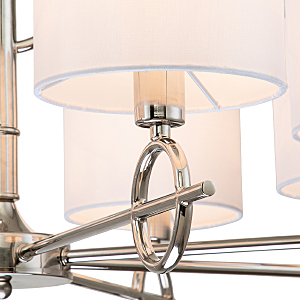 Допускается отличие страны-изготовителя, указанной в характеристиках. Линии производства могут находиться в нескольких государствах. Это не влияет на качество изготовления товара: все заводы данного бренда работают по общим стандартам, а готовые изделия проходят соответствующий контроль.Великобритания Коллекция Moraine ЦветЦвет арматуры Хром Цвет Хром Материал арматуры Металл Цвет плафона Белый Материал плафона Ткань РазмерыВысота (мм) 1020 Длина (мм) 760 Ширина (мм) 760 Диаметр абажура-плафона 150 Высота абажура-плафона 130 ЭлектрикаКоличество ламп (шт) 8 Цоколь E14 Мощность лампы (Вт) 40 Напряжение (В) 220 Площадь освещения 12 Дополнительная информацияСпособ крепления Крюк Степень защиты (IP) IP20 Вес (Кг) 2,8 Тип подвеса На цепи -