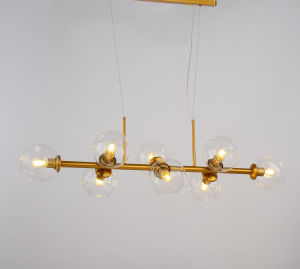 Допускается отличие страны-изготовителя, указанной в характеристиках. Линии производства могут находиться в нескольких государствах. Это не влияет на качество изготовления товара: все заводы данного бренда работают по общим стандартам, а готовые изделия проходят соответствующий контроль.Польша Коллекция Moretti ЦветЦвет арматуры Бронза, Янтарный Цвет Бронза Материал арматуры Стекло, Металл Цвет плафона прозрачный Материал плафона Стекло РазмерыВысота (мм) 350 Диаметр абажура-плафона 160 ЭлектрикаКоличество ламп (шт) 9 Цоколь E27 Тип лампы все типы лампочек Лампочки в комплекте Нет в комплекте Мощность лампы (Вт) 40 Напряжение (В) 220 Дополнительная информацияСтепень защиты (IP) IP20 Вес (Кг) 8 Тип подвеса На тросах -