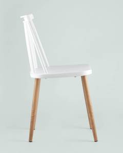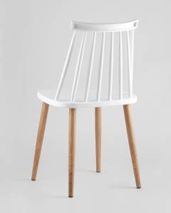 Стул пластиковый Морган белый, ножки металлические с принтом под дерево