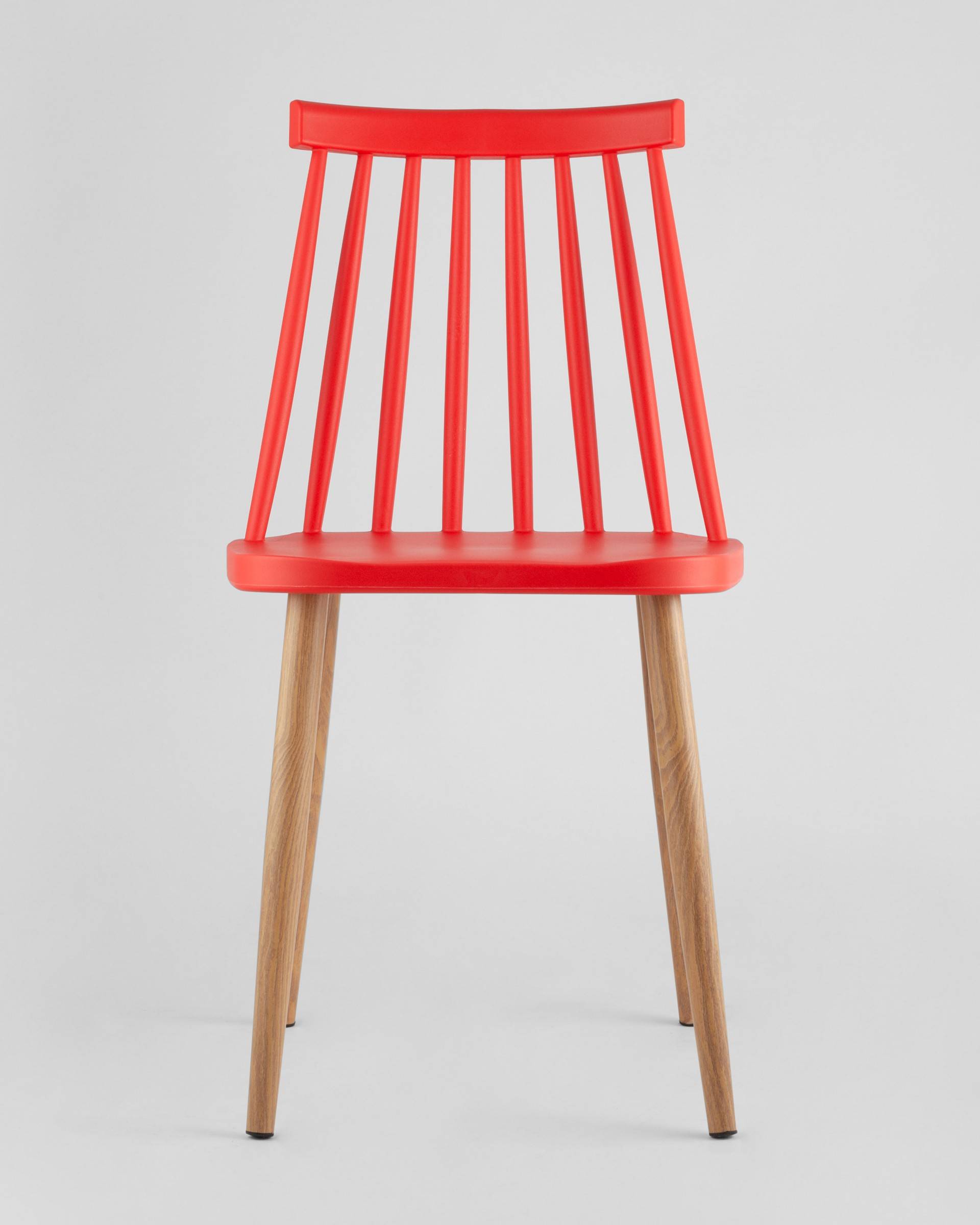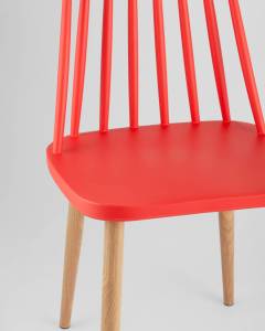 Стул пластиковый Морган красный, ножки металлические с принтом под дерево