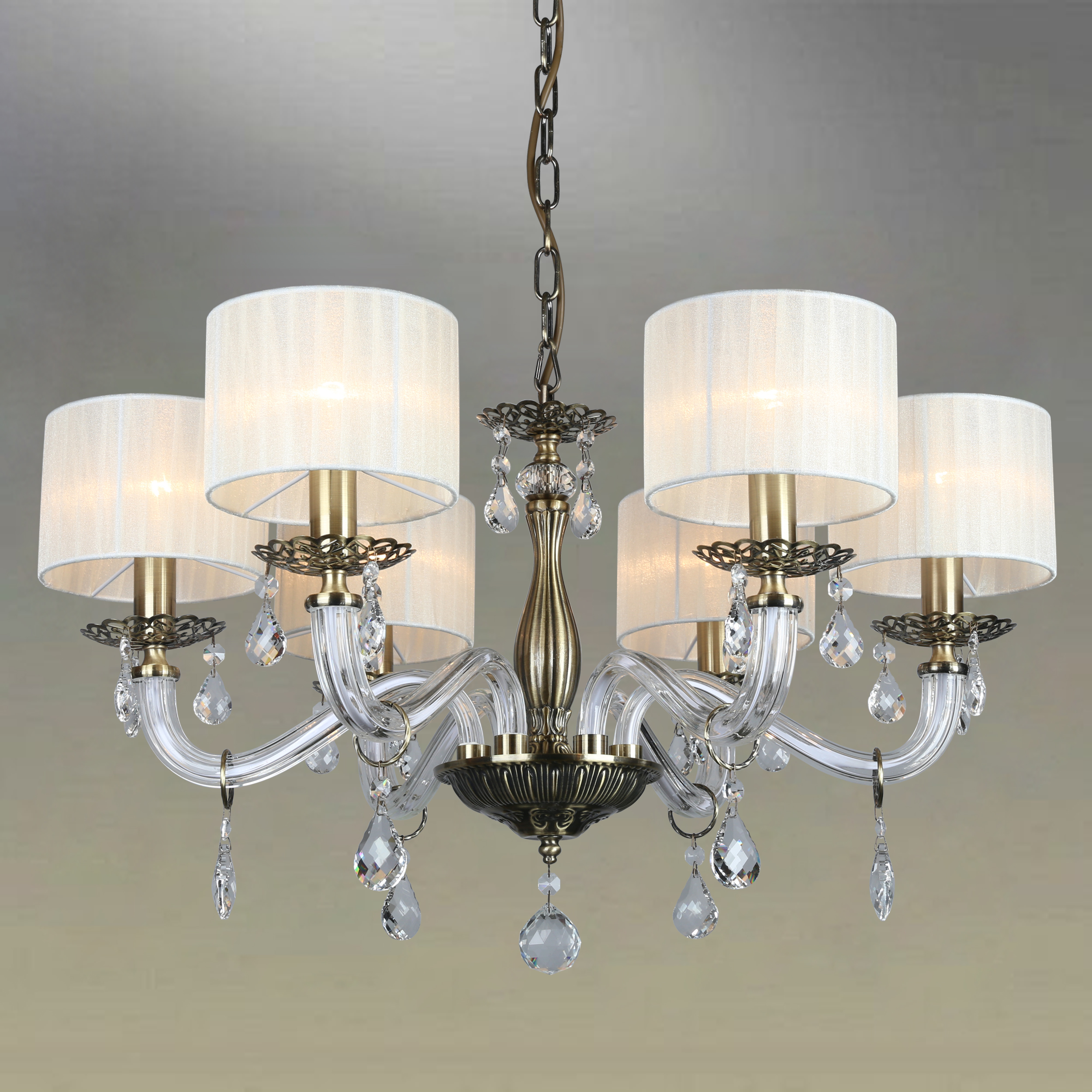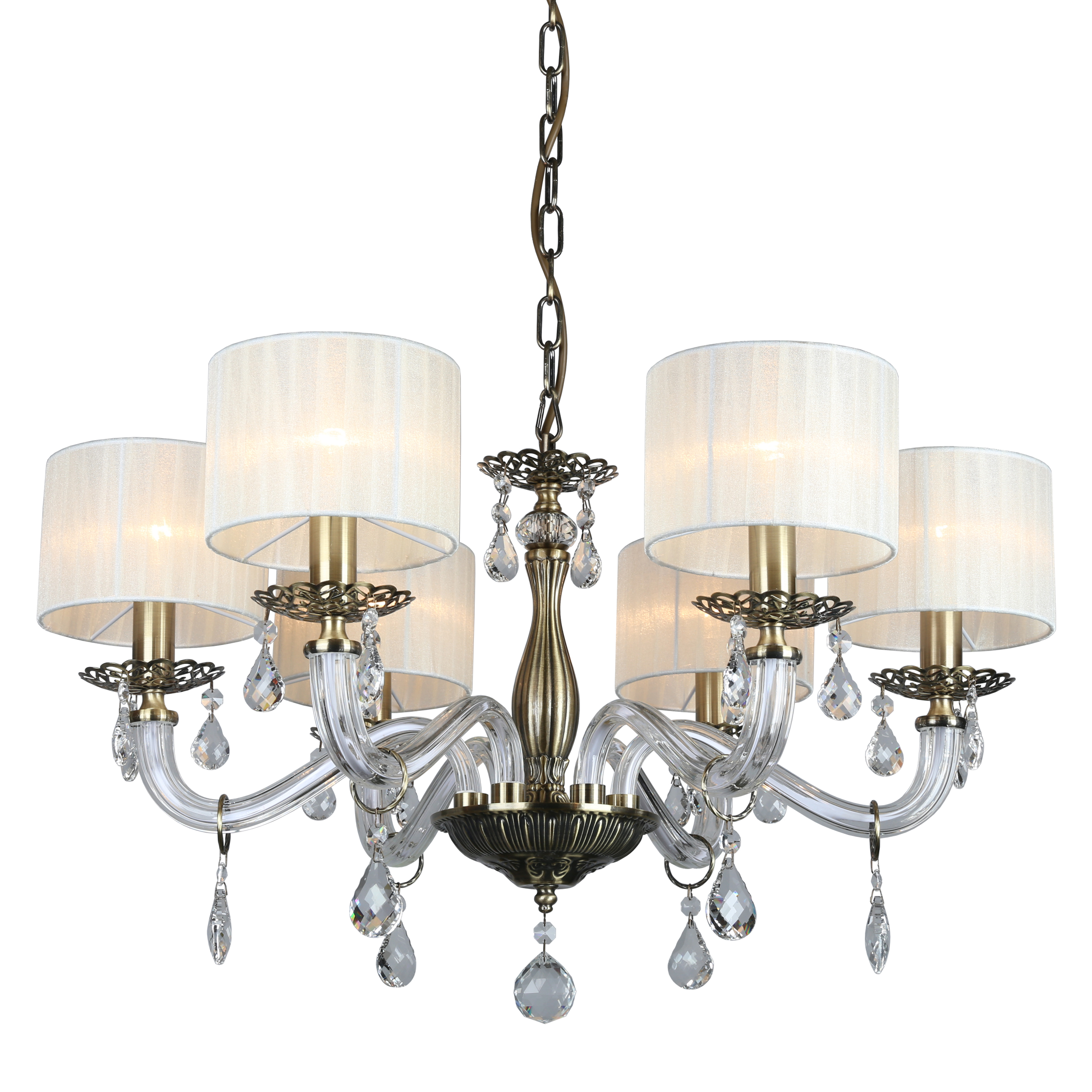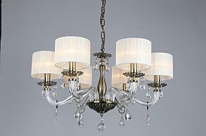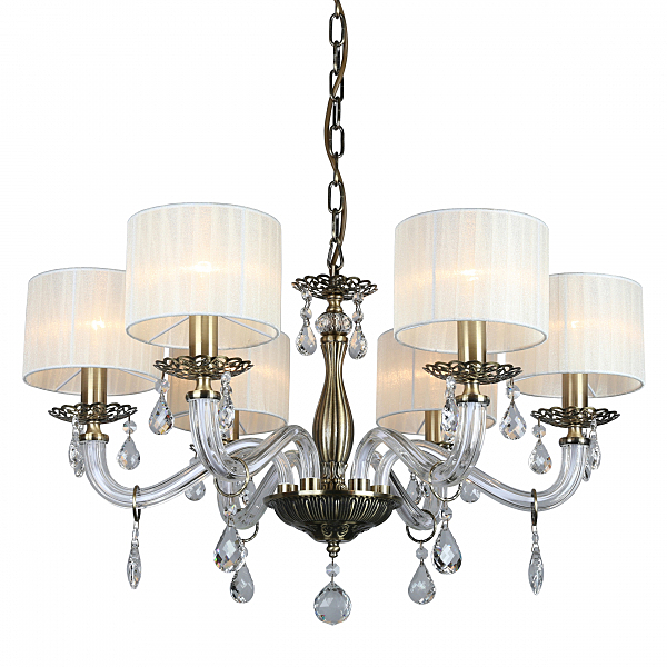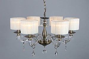 Допускается отличие страны-изготовителя, указанной в характеристиках. Линии производства могут находиться в нескольких государствах. Это не влияет на качество изготовления товара: все заводы данного бренда работают по общим стандартам, а готовые изделия проходят соответствующий контроль.Китай Коллекция Moschetta ЦветЦвет арматуры Бронза Цвет Бронза Материал арматуры Металл, Стекло Цвет декора прозрачный Цвет плафона Белый Материал декора Хрусталь Материал плафона Ткань РазмерыВысота (мм) 950 Диаметр (мм) 650 Высота минимальная (мм) 450 Ширина (мм) 650 ЭлектрикаКоличество ламп (шт) 6 Цоколь E14 Мощность лампы (Вт) 40 Напряжение (В) 220 Дополнительная информацияСпособ крепления Крюк Тип подвеса На цепи -