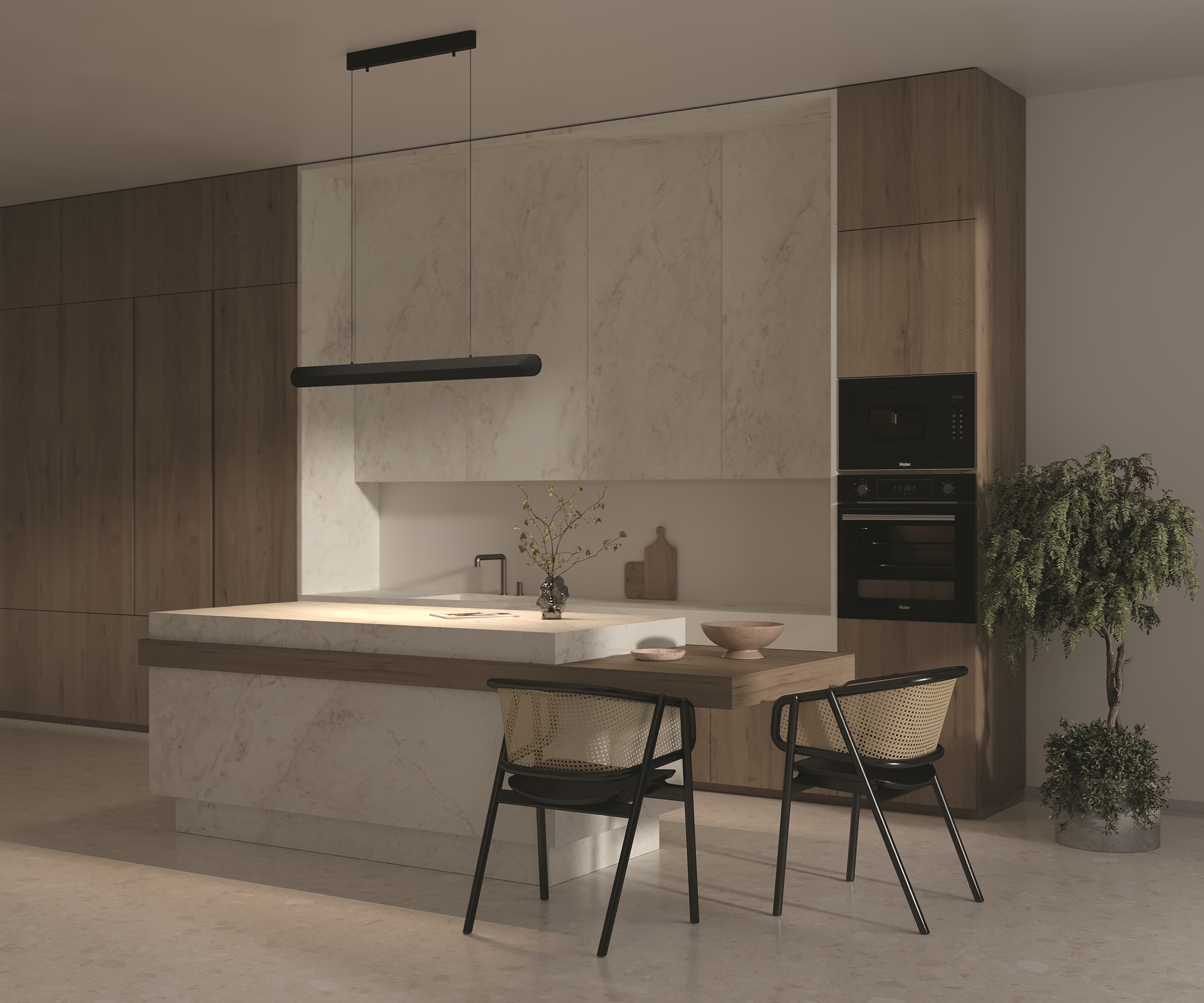 Материал арматуры - алюминий, цвета - черный, белый. LED-источник света, цветовая температура: 3000K. Минималистичный дизайн с управлением при помощи сенсора движения. Функции: включение, выключение и диммирование легким движением руки под горизонтальным светильником и бра. Регулируемый провод 3 метра, подходит для помещений с высокими потолками.