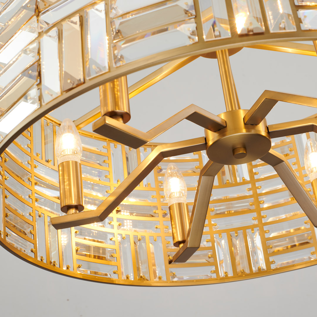 Допускается отличие страны-изготовителя, указанной в характеристиках. Линии производства могут находиться в нескольких государствах. Это не влияет на качество изготовления товара: все заводы данного бренда работают по общим стандартам, а готовые изделия проходят соответствующий контроль.Россия Коллекция Moville ЦветЦвет арматуры латунь классическая Цвет Латунь Материал арматуры Металл РазмерыВысота (мм) 400 Диаметр (мм) 650 Высота минимальная (мм) 250 Ширина (мм) 650 ЭлектрикаКоличество ламп (шт) 6 Цоколь E14 Тип лампы Светодиодная Мощность лампы (Вт) 6 Дополнительная информацияТип подвеса На цепи -