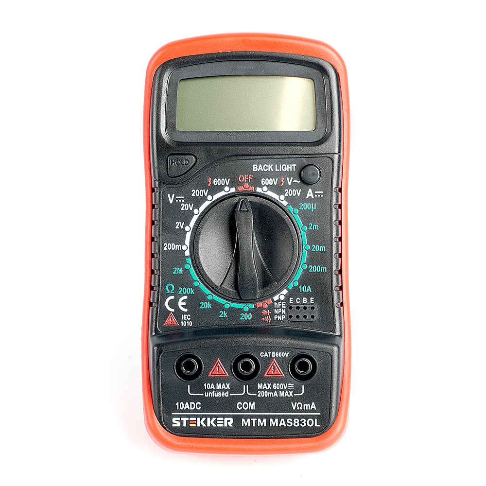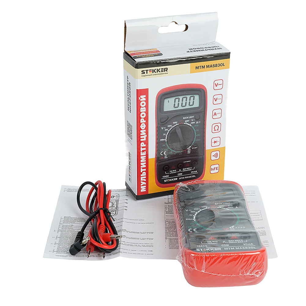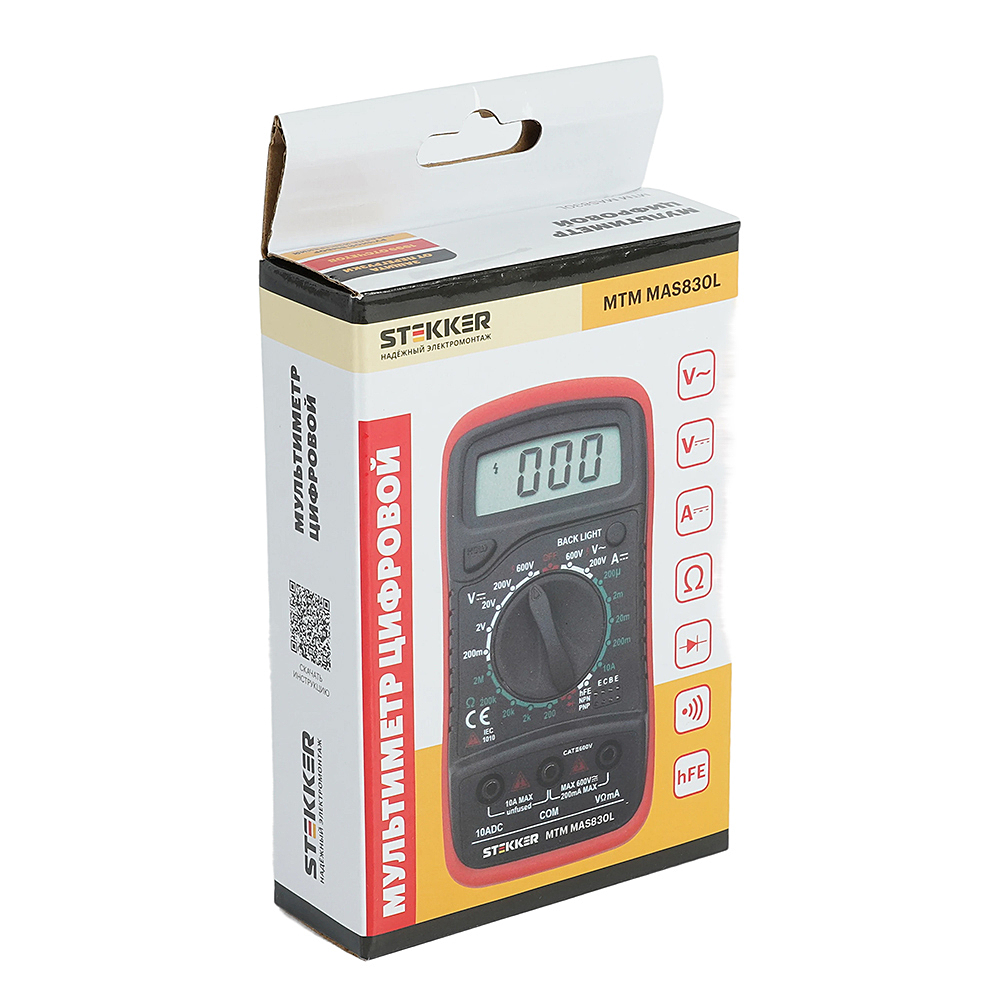 MTM MAS830L Мультиметр цифровой, 1999 отсчетов, батарея крона, ручная регулировка, черный/красный