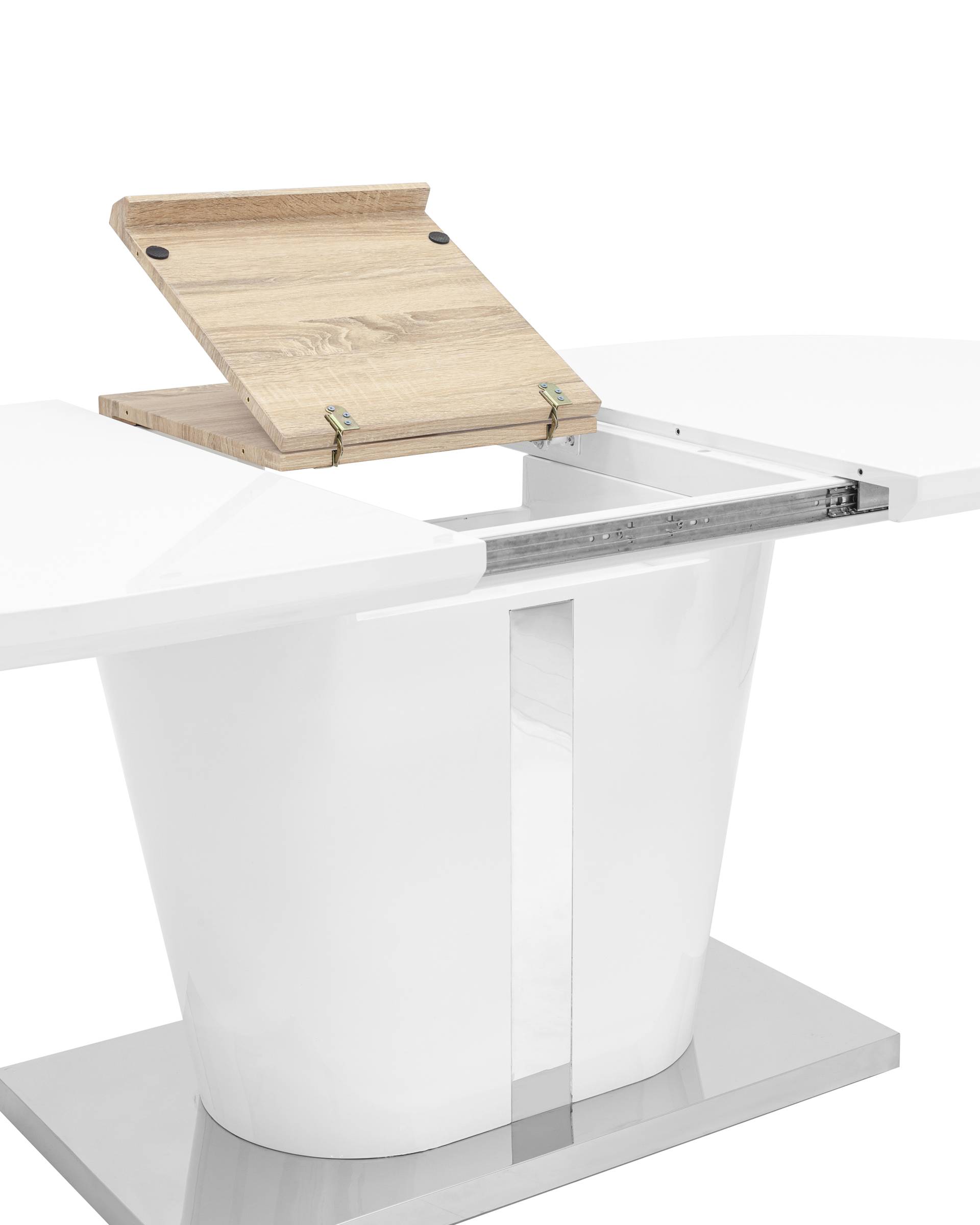 <p>Стильный обеденный стол с раскладной столешницей.</p><p>Размеры столешницы 160*90 см. Дополнительно раскладывается до 220 см.</p><p>Цвет: белый глянцевый.</p>