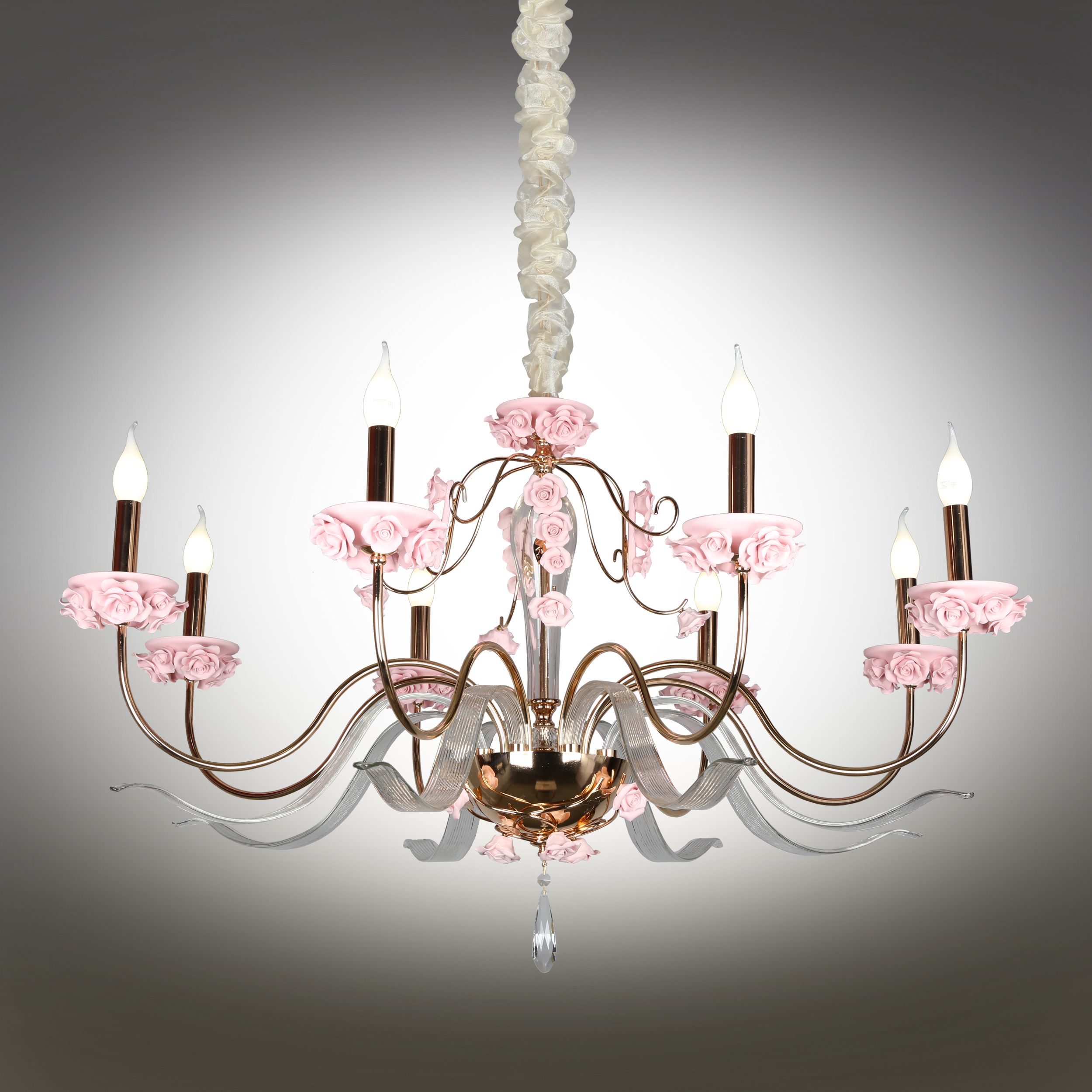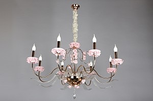 Допускается отличие страны-изготовителя, указанной в характеристиках. Линии производства могут находиться в нескольких государствах. Это не влияет на качество изготовления товара: все заводы данного бренда работают по общим стандартам, а готовые изделия проходят соответствующий контроль.Китай Коллекция Muntiggioni ЦветЦвет арматуры Золото, Розовый Цвет Золото Материал арматуры Металл, Стекло РазмерыВысота (мм) 1300 Диаметр (мм) 1050 Высота минимальная (мм) 800 Ширина (мм) 1050 ЭлектрикаКоличество ламп (шт) 8 Цоколь E14 Мощность лампы (Вт) 40 Напряжение (В) 220 Дополнительная информацияСпособ крепления Крюк Вес (Кг) 8,8 Тип подвеса На цепи -