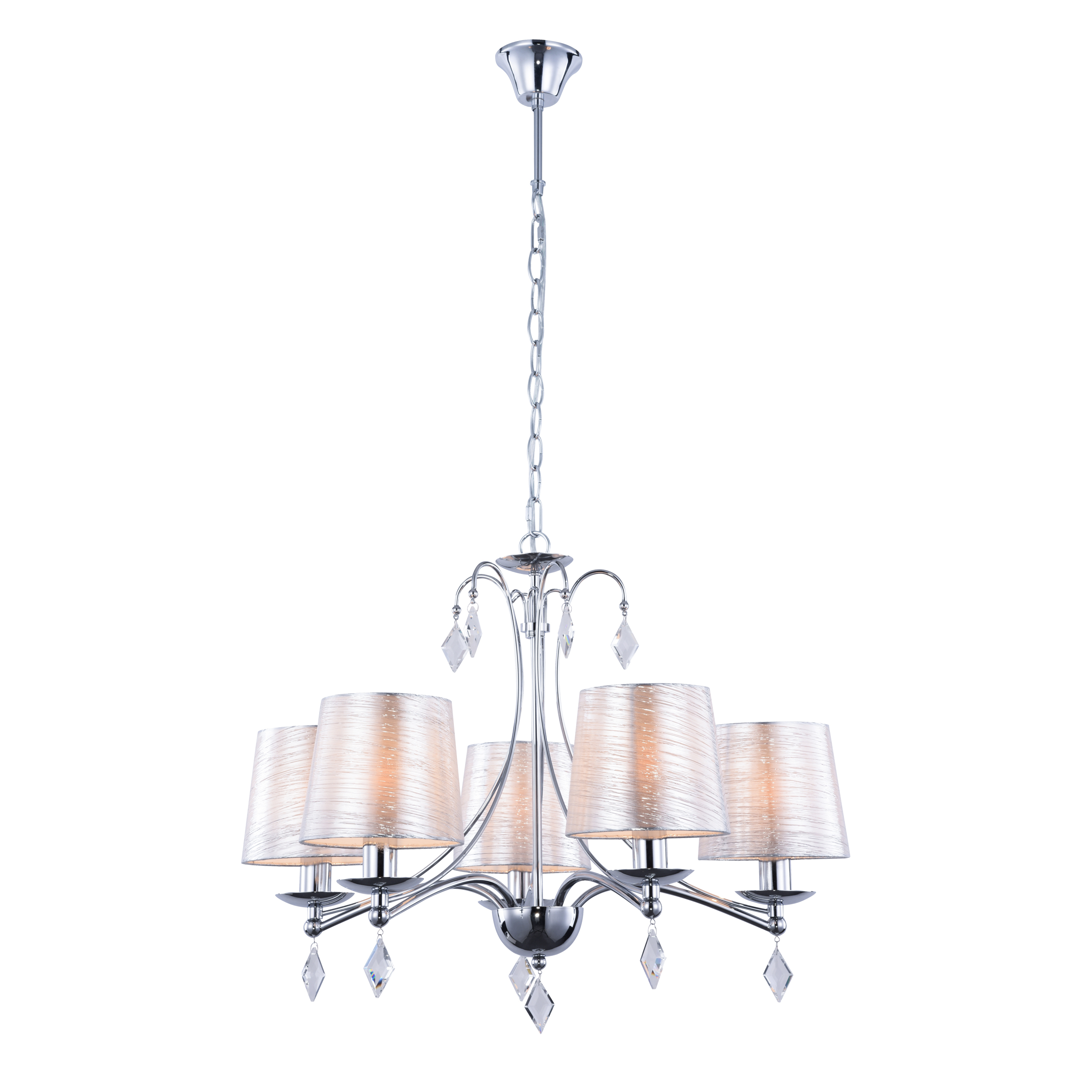Допускается отличие страны-изготовителя, указанной в характеристиках. Линии производства могут находиться в нескольких государствах. Это не влияет на качество изготовления товара: все заводы данного бренда работают по общим стандартам, а готовые изделия проходят соответствующий контроль.Китай Коллекция Murgetta ЦветЦвет арматуры Хром Цвет Хром Материал арматуры Металл Цвет плафона Белый Материал плафона Ткань РазмерыВысота (мм) 1300 Диаметр (мм) 630 Высота минимальная (мм) 435 Ширина (мм) 630 ЭлектрикаКоличество ламп (шт) 5 Цоколь E14 Мощность лампы (Вт) 40 Напряжение (В) 220 Дополнительная информацияСпособ крепления Крюк Тип подвеса На цепи -