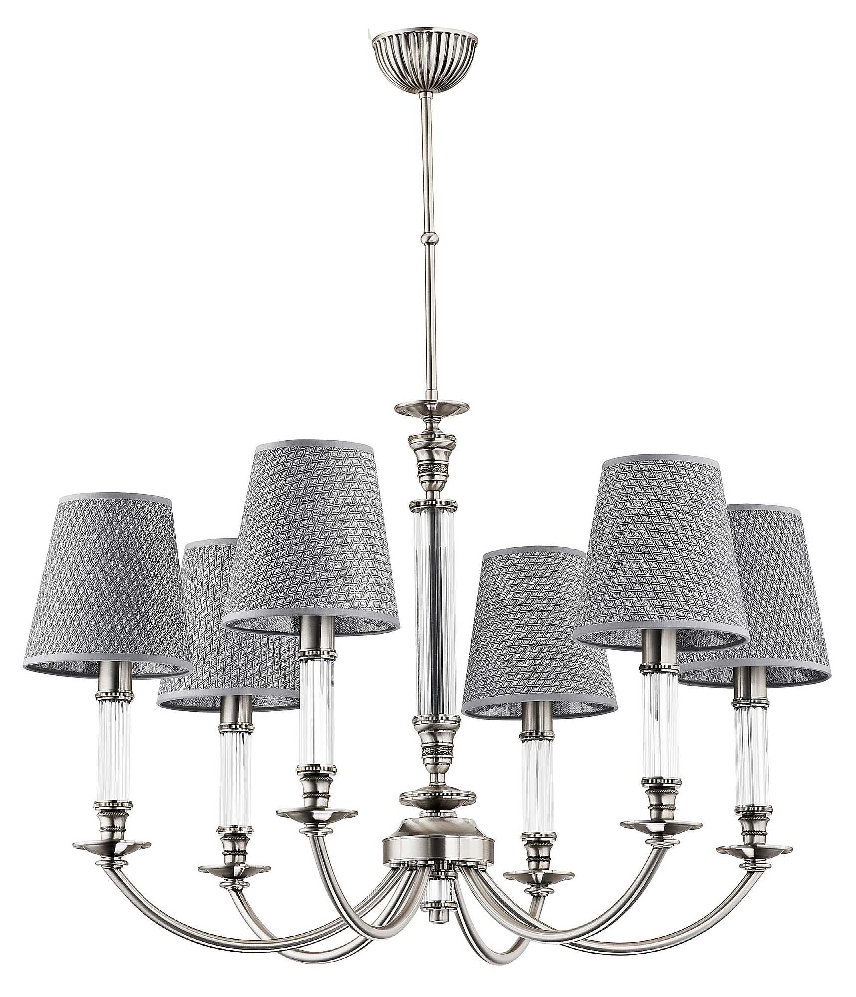 Шестирожковая люстра NAP-ZW-6 (N/A) с никелированной арматурой - сдержанная и современная модель для классических интерьеров в холодной гамме. Отличный вариант для светлых гостиных, обеденных зон или кабинетов.