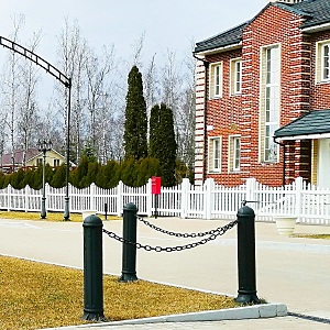 Столбик для ограждения(с цепочкой) FUMAGALLI серии NARDO, модель NARDO 900 - изготовлены в Италии. Используются для декоративного ограждения парковых дорожек, газонов, парковок, набережных, как элемент городского и ландшафтного дизайна. Выполнен в классическом стиле конца 19 века, имитирующий чугунный столб -ограждение с проушинами под крепление цепочек. Корпус изготовлен из современного вандалостойкого, негорючего полимера RESIN. Это материал на основе сверх прочных эпоксидных смол обладает уникальными характеристиками. Он не не ржавеет, и не выгорает на солнце, не боится химических удобрений и реагентов ЖКХ (которые используют для анти обледенения и ухода за декоративными растениями). Срок службы изделия - не менее 20 лет, в течении которого парковый столбик-ограждение не нужно красить и как либо обслуживать. Температура эксплуатации от -60 до +90. При заказе требуется выбрать цвет корпуса. С ограждениями NARDO возможно испльзовать схожие по дизайну светильники серии SAURO высотой 500, 800 или 1100 мм., а так же настенный светильник MIRELLA. Закладные крепежные элементы для столбика NARDO - поставляются в комплекте, цепочка приобретается отдельно.