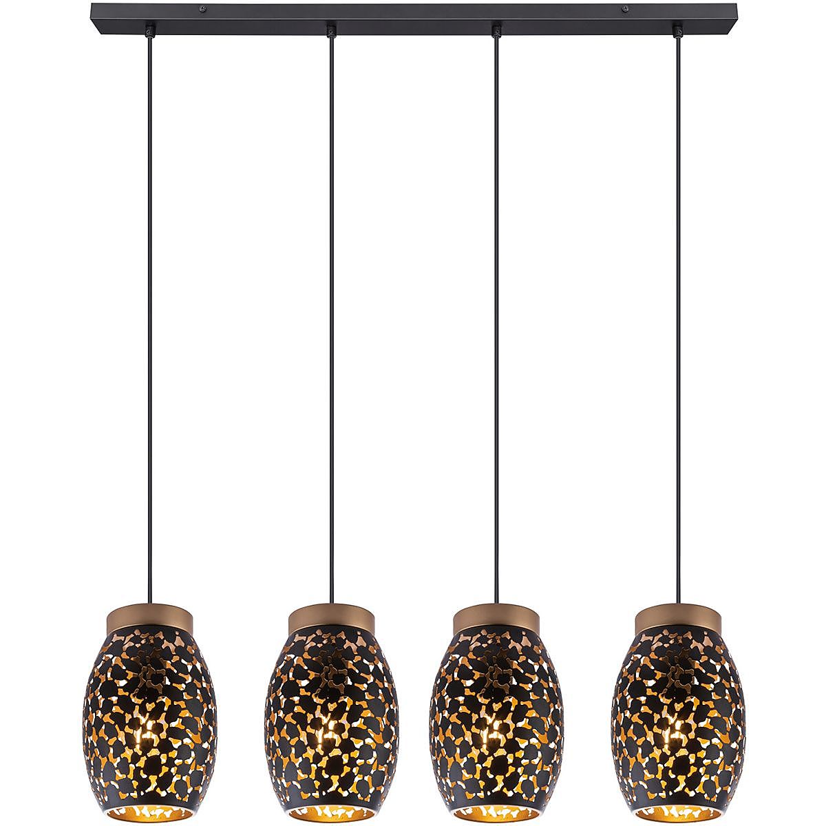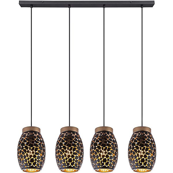 Допускается отличие страны-изготовителя, указанной в характеристиках. Линии производства могут находиться в нескольких государствах. Это не влияет на качество изготовления товара: все заводы данного бренда работают по общим стандартам, а готовые изделия проходят соответствующий контроль.Австрия Коллекция Narri ЦветЦвет арматуры Черный Цвет Черный Материал арматуры Металл Цвет плафона Черный, золотой Материал плафона Металл РазмерыВысота (мм) 1200 Длина (мм) 900 Ширина (мм) 150 ЭлектрикаКоличество ламп (шт) 4 Цоколь E27 Лампочки в комплекте Нет в комплекте Мощность лампы (Вт) 40 Площадь освещения 8 Дополнительная информацияВес (Кг) 2,63 Тип подвеса На тросах Количество подвесов Много подвесных элементов -