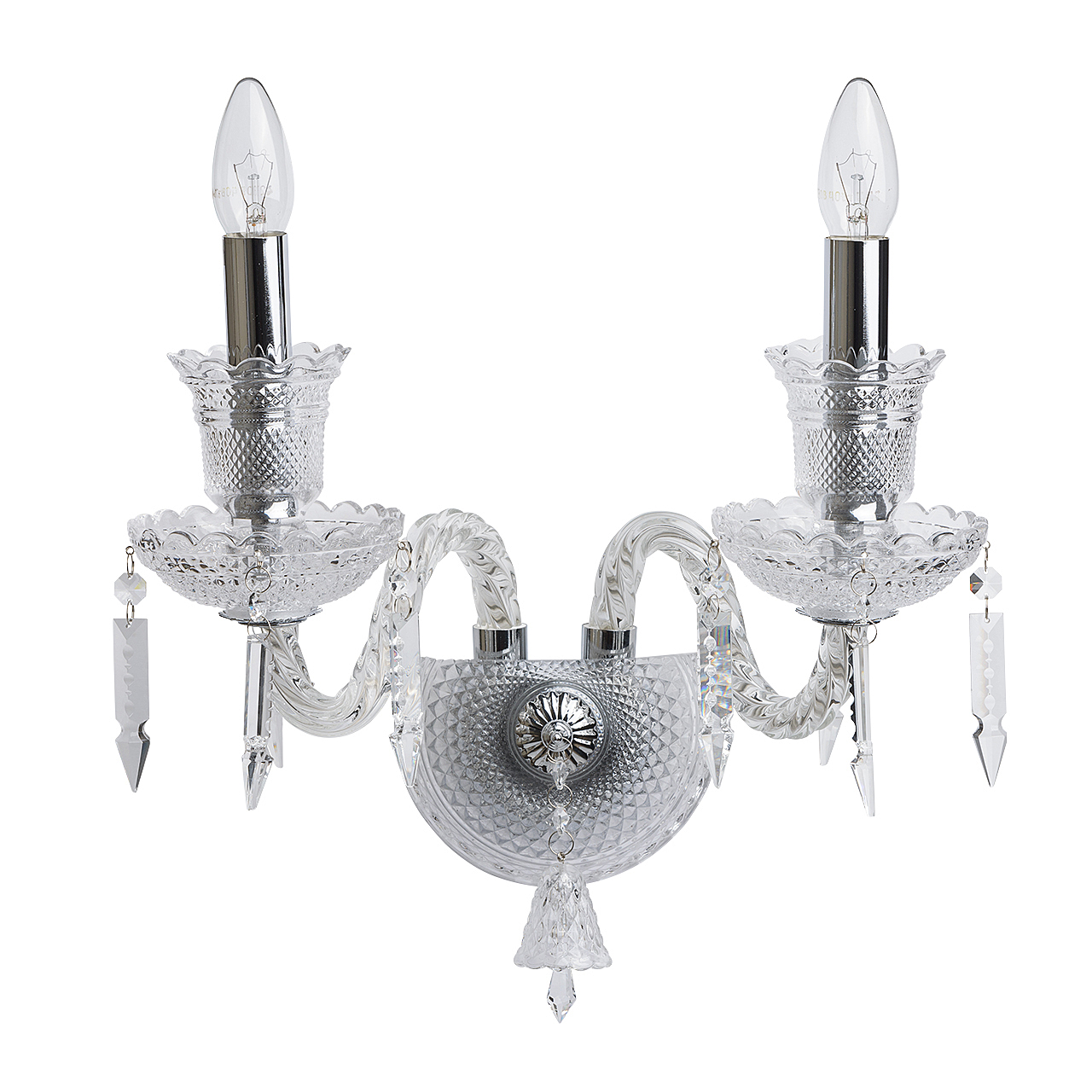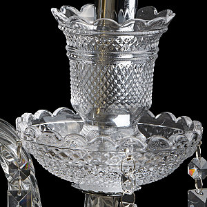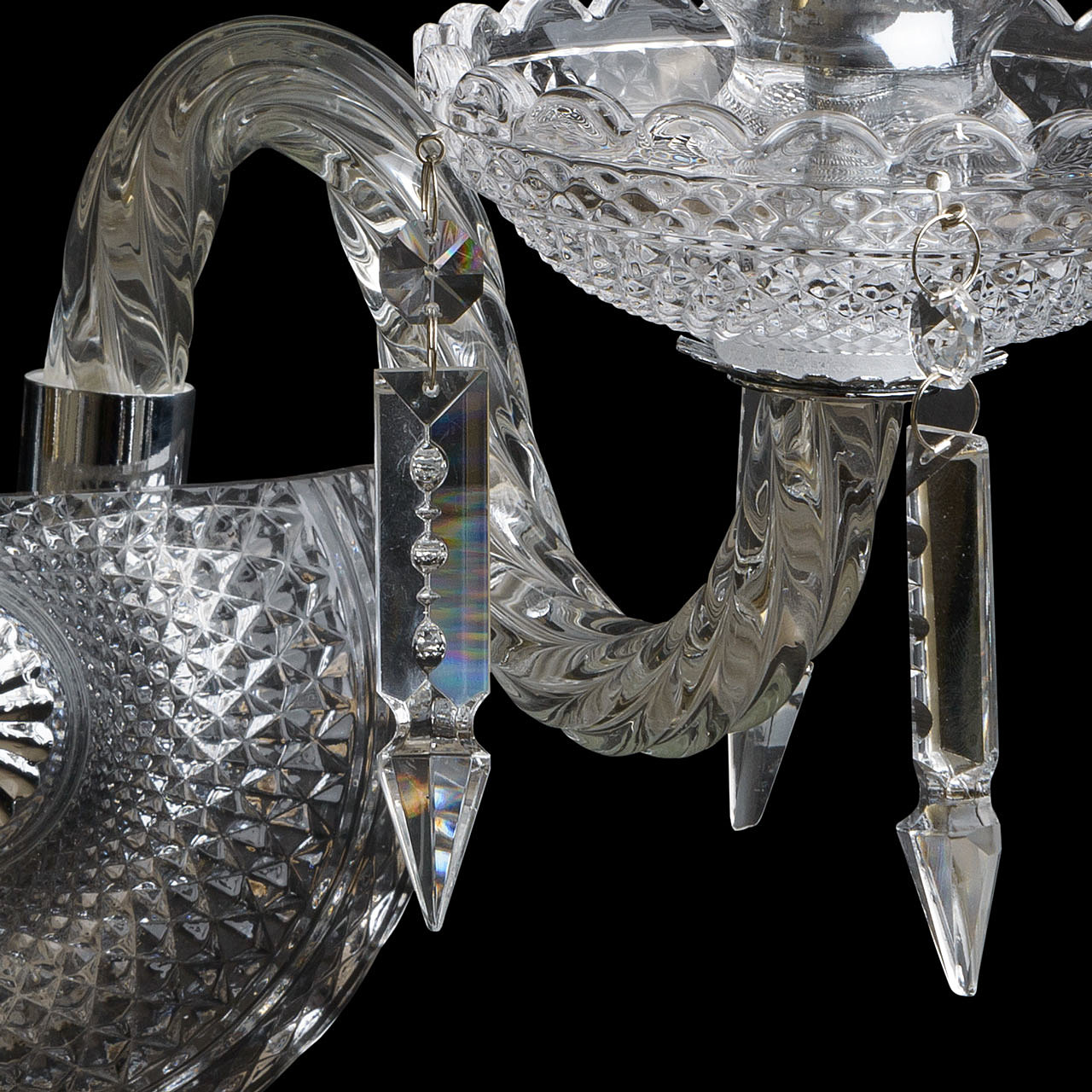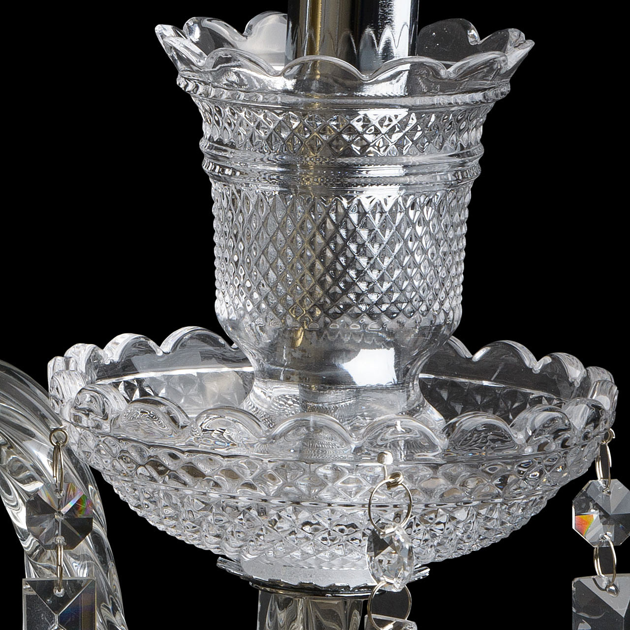 Роскошная люстра из коллекции «Барселона» поражает воображение своим торжественным величием в сочетании с королевским изяществом. Основание из металла цвета хрома декорировано прозрачным хрустальным стеклом грановитой огранки. Розетки светильника и его це