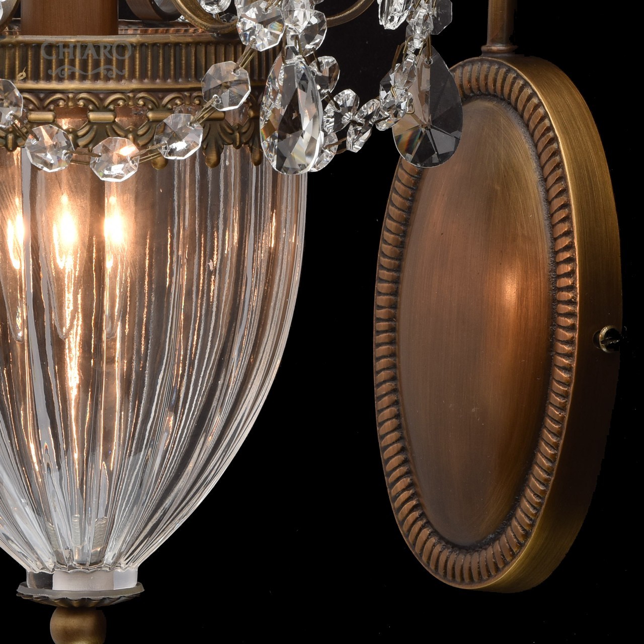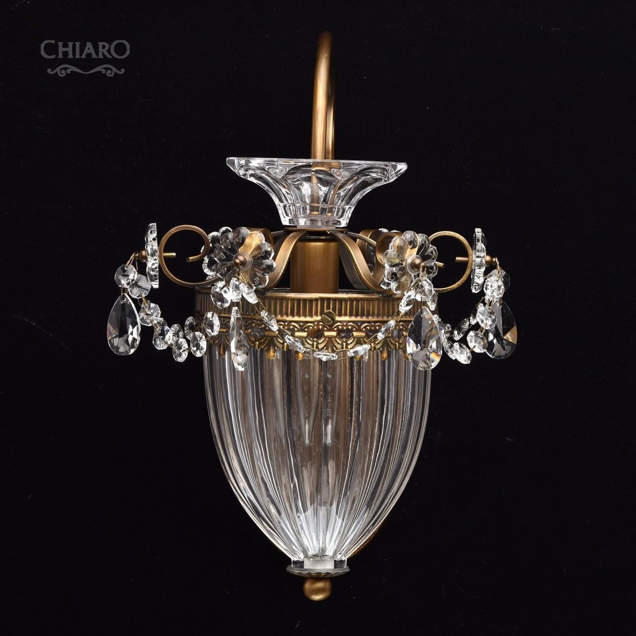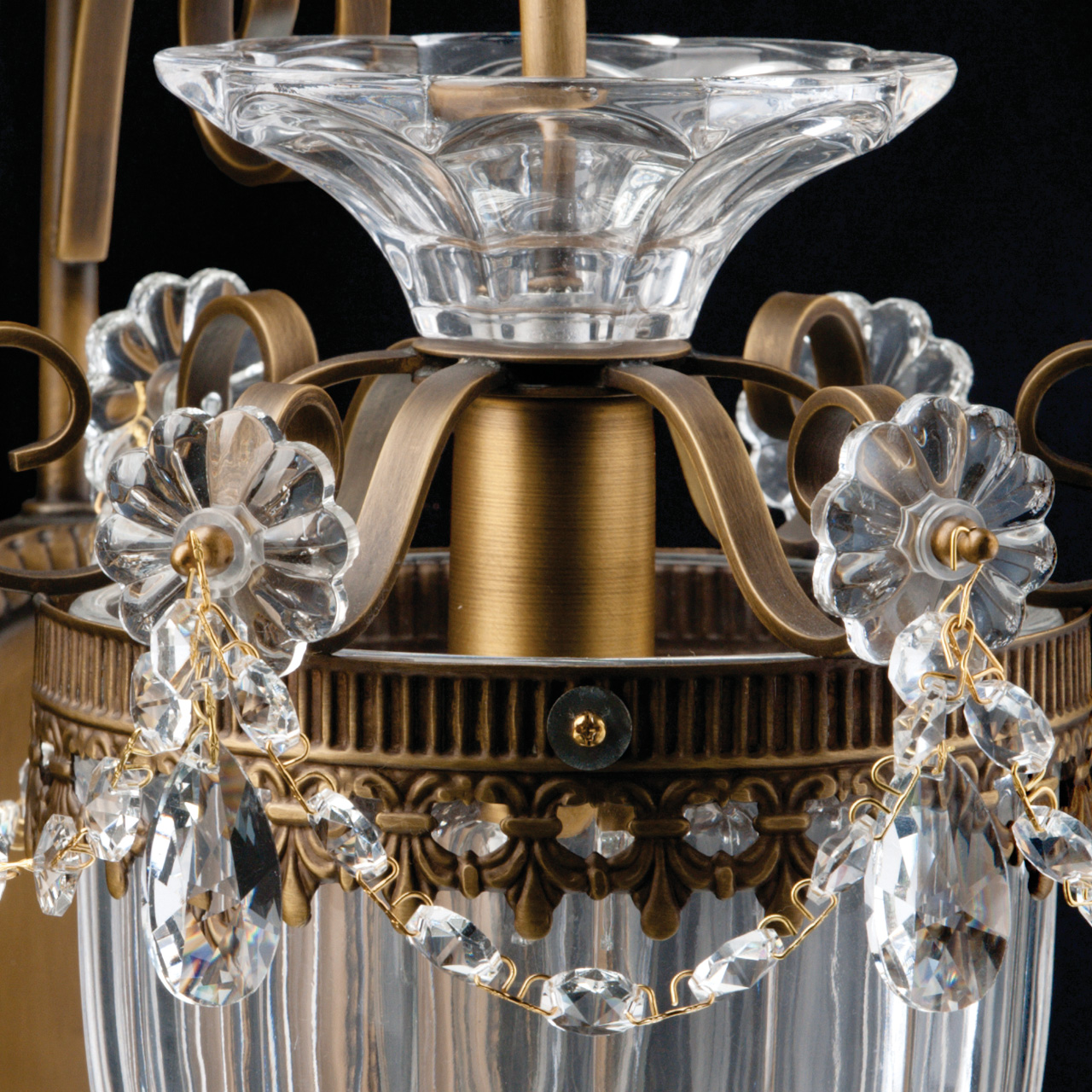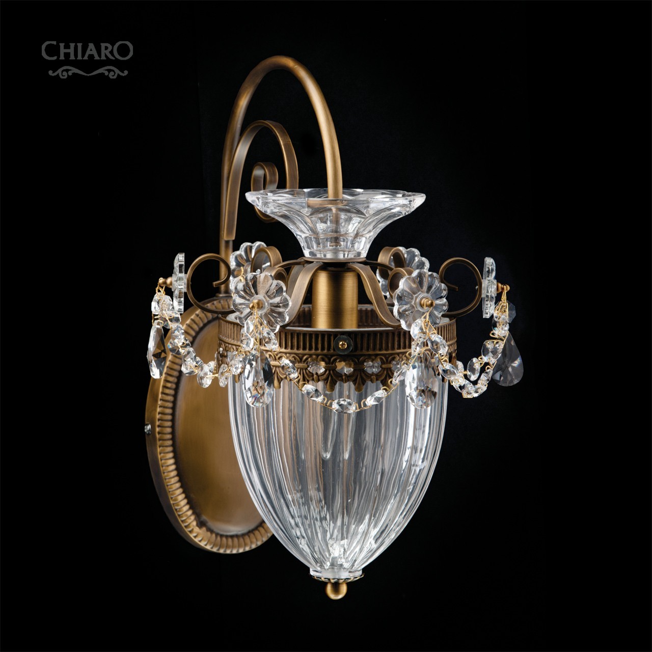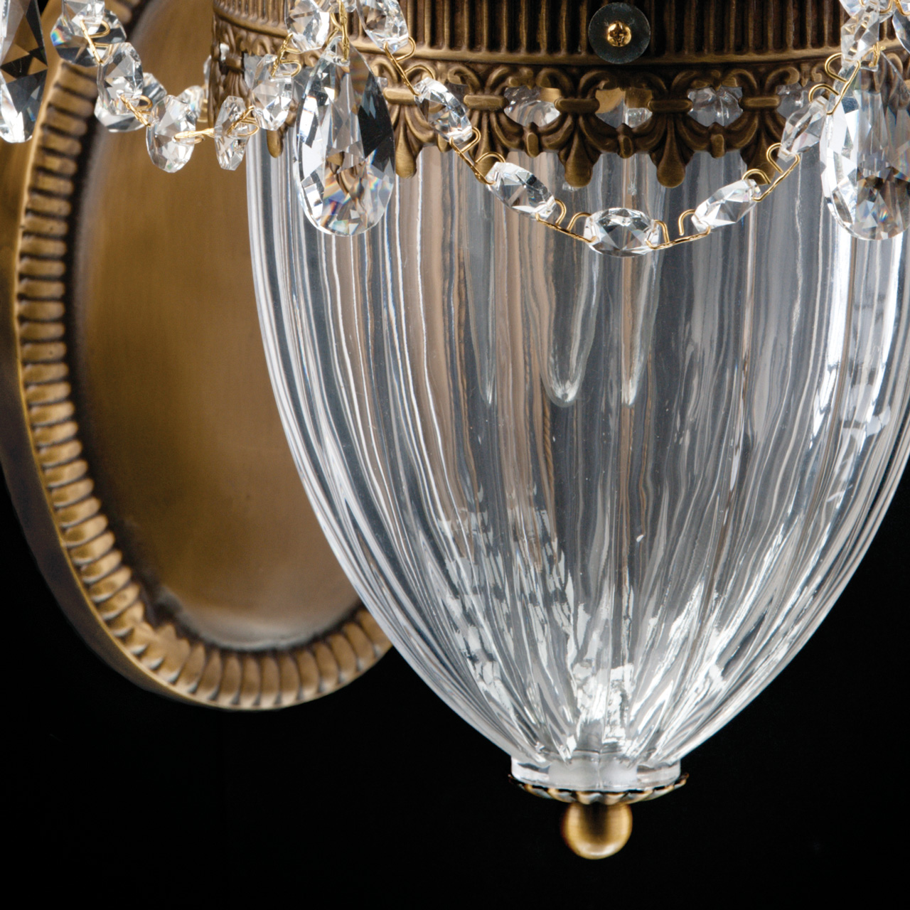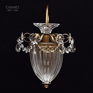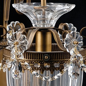 Свою нотку индивидуальности в конструкцию светильника из коллекции Селена привносит очертание стеклянного плафона с рельефной декоративной поверхностью, который словно парит в воздухе. Мягко изогнутые линии металлической арматуры из ценной латуни формирую