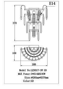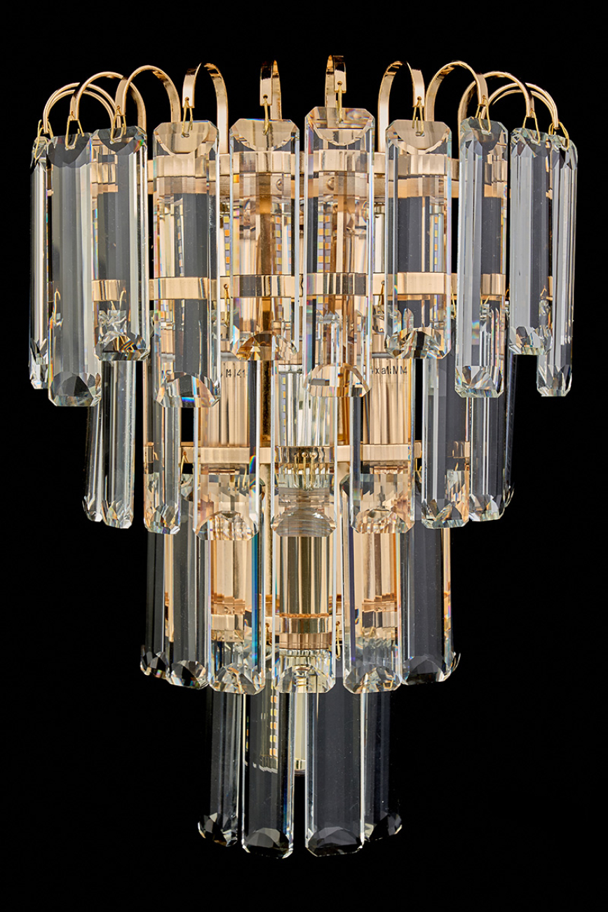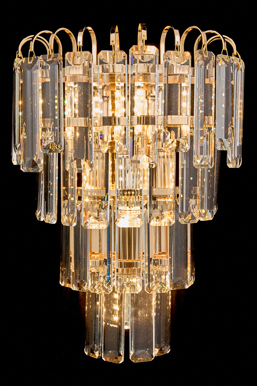 Допускается отличие страны-изготовителя, указанной в характеристиках. Линии производства могут находиться в нескольких государствах. Это не влияет на качество изготовления товара: все заводы данного бренда работают по общим стандартам, а готовые изделия проходят соответствующий контроль.Россия Коллекция Catherine ЦветЦвет арматуры Золото Цвет Золото Материал арматуры Металл гальванизированный Цвет плафона прозрачный Материал плафона Хрусталь РазмерыВысота (мм) 530 Длина (мм) 28 Ширина (мм) 160 ЭлектрикаКоличество ламп (шт) 3 Цоколь E14 Дополнительная информацияВес (Кг) 3.2 -