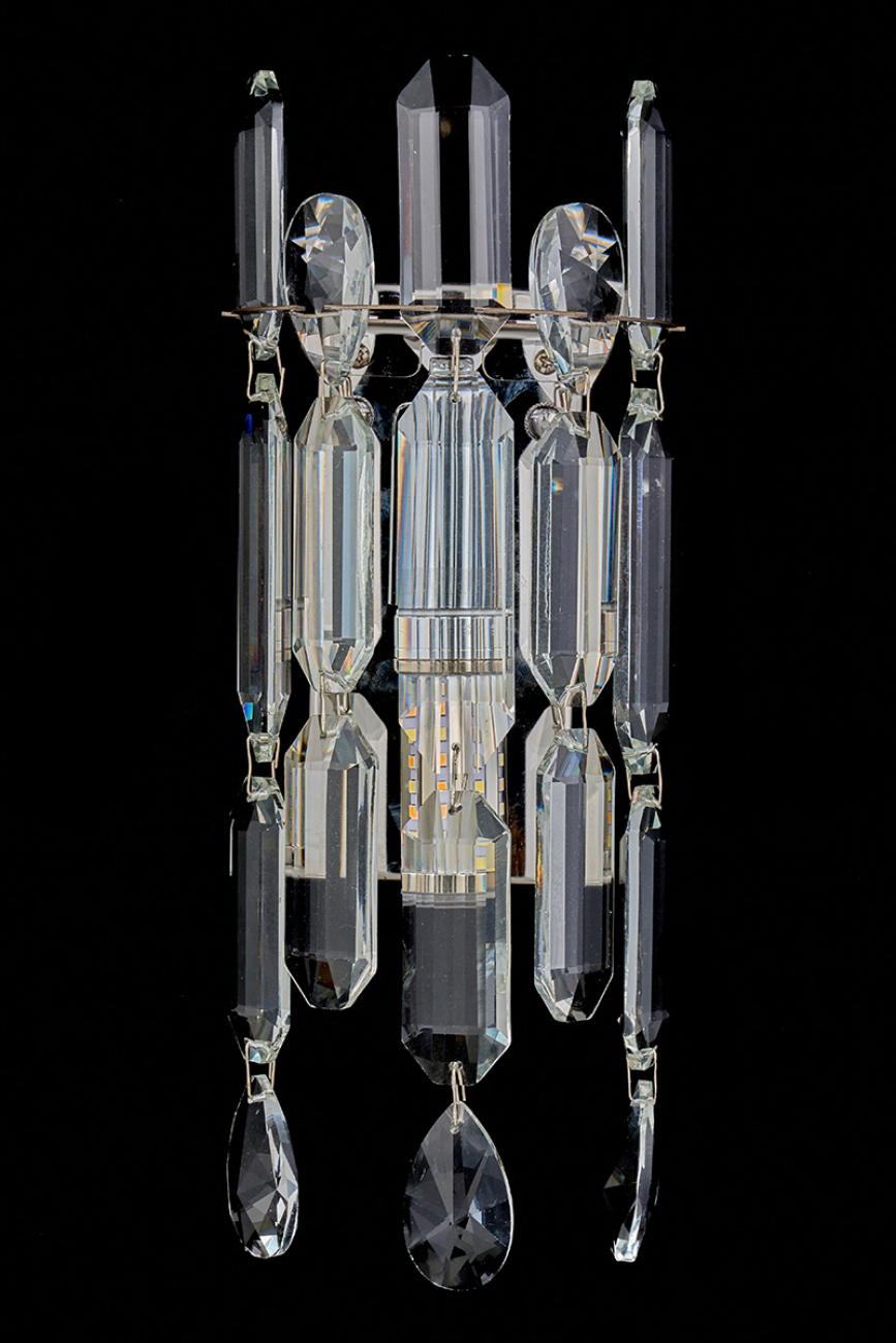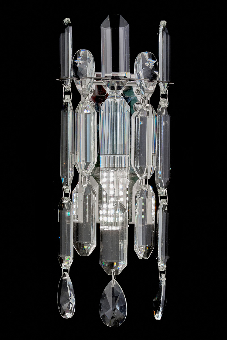 Допускается отличие страны-изготовителя, указанной в характеристиках. Линии производства могут находиться в нескольких государствах. Это не влияет на качество изготовления товара: все заводы данного бренда работают по общим стандартам, а готовые изделия проходят соответствующий контроль.Россия Коллекция Elien ЦветЦвет арматуры Хром Цвет Хром Материал арматуры Металл гальванизированный Цвет плафона прозрачный Материал плафона Хрусталь РазмерыВысота (мм) 315 Длина (мм) 8.5 Ширина (мм) 125 ЭлектрикаКоличество ламп (шт) 1 Цоколь E14 Дополнительная информацияВес (Кг) 1.1 -