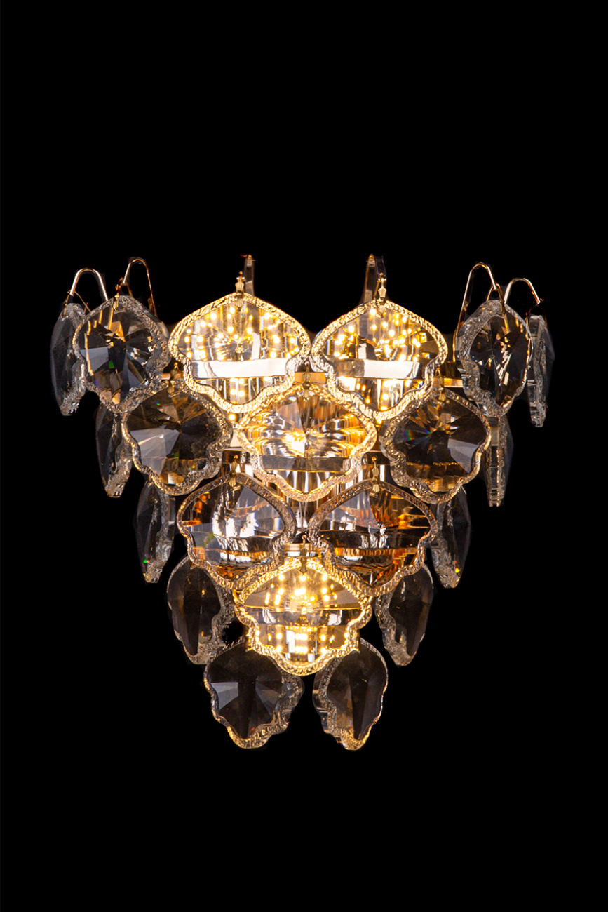 Допускается отличие страны-изготовителя, указанной в характеристиках. Линии производства могут находиться в нескольких государствах. Это не влияет на качество изготовления товара: все заводы данного бренда работают по общим стандартам, а готовые изделия проходят соответствующий контроль.Россия Коллекция Florence ЦветЦвет арматуры Золото Цвет Золото Материал арматуры Металл гальванизированный Цвет плафона прозрачный Материал плафона Хрусталь РазмерыВысота (мм) 280 Длина (мм) 18 Ширина (мм) 300 ЭлектрикаКоличество ламп (шт) 3 Цоколь E14 Дополнительная информацияВес (Кг) 3.5 -