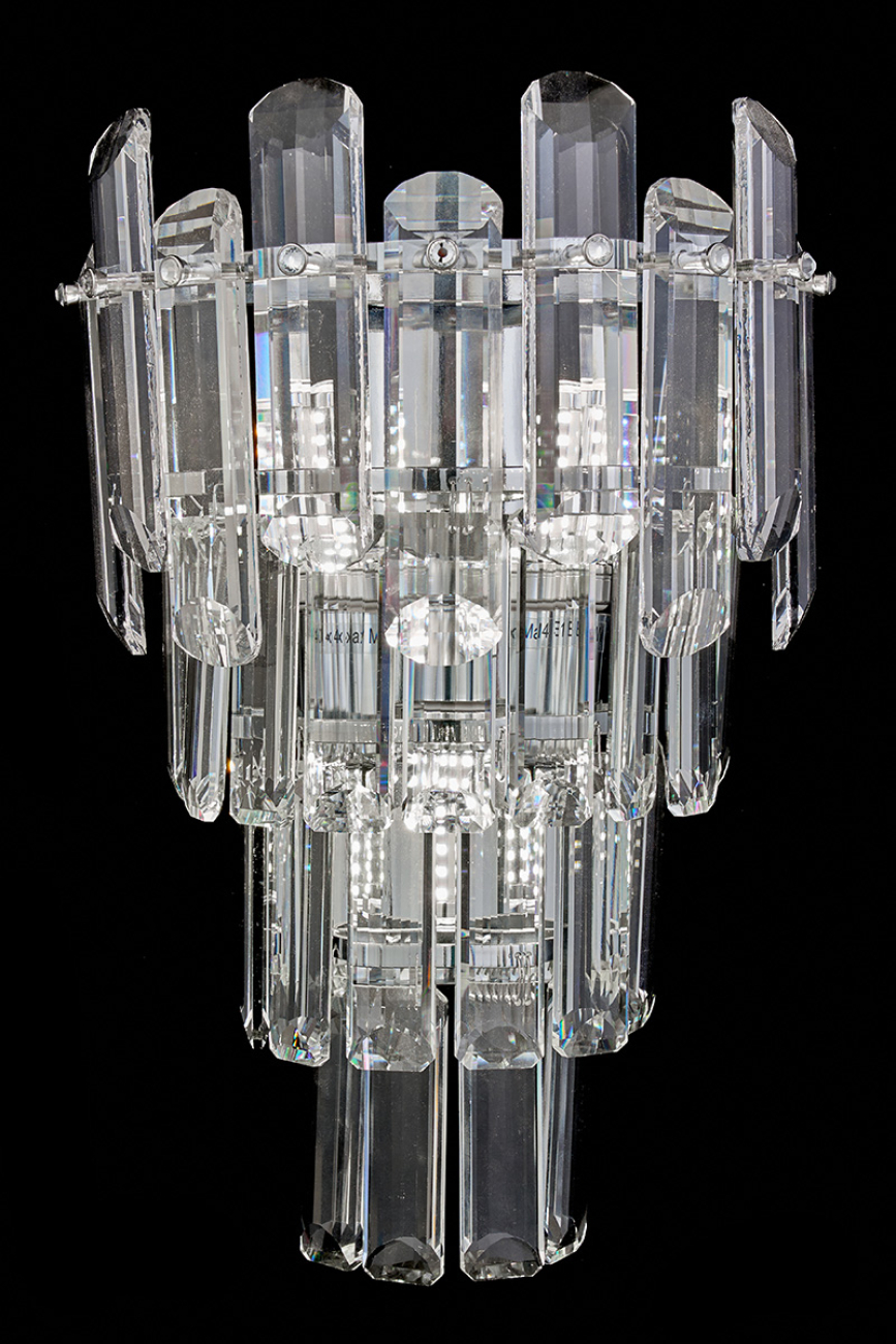 Допускается отличие страны-изготовителя, указанной в характеристиках. Линии производства могут находиться в нескольких государствах. Это не влияет на качество изготовления товара: все заводы данного бренда работают по общим стандартам, а готовые изделия проходят соответствующий контроль.Россия Коллекция Jacqueline ЦветЦвет арматуры Хром Цвет Хром Материал арматуры Металл гальванизированный Цвет плафона прозрачный Материал плафона Хрусталь РазмерыВысота (мм) 495 Длина (мм) 25 Ширина (мм) 145 ЭлектрикаКоличество ламп (шт) 3 Цоколь E14 Дополнительная информацияВес (Кг) 3.4 -