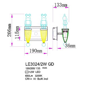 Допускается отличие страны-изготовителя, указанной в характеристиках. Линии производства могут находиться в нескольких государствах. Это не влияет на качество изготовления товара: все заводы данного бренда работают по общим стандартам, а готовые изделия проходят соответствующий контроль.Россия Коллекция Joli ЦветЦвет арматуры Никель Цвет Золото Материал арматуры Металл гальванизированный Цвет плафона прозрачный Материал плафона Металл РазмерыВысота (мм) 266 Длина (мм) 19 Ширина (мм) 133 ЭлектрикаЦоколь LED Мощность лампы (Вт) 12 Световой поток 600 Цветовая температура теплый (3000k) Дополнительная информацияВес (Кг) 1.6 -