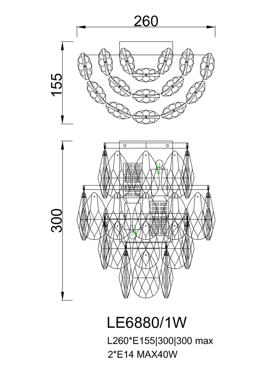 Допускается отличие страны-изготовителя, указанной в характеристиках. Линии производства могут находиться в нескольких государствах. Это не влияет на качество изготовления товара: все заводы данного бренда работают по общим стандартам, а готовые изделия проходят соответствующий контроль.Россия Коллекция Melanie ЦветЦвет арматуры Хром Цвет Хром Материал арматуры Металл гальванизированный Цвет плафона прозрачный Материал плафона Хрусталь РазмерыВысота (мм) 300 Длина (мм) 26 Ширина (мм) 155 ЭлектрикаКоличество ламп (шт) 2 Цоколь E14 Дополнительная информацияВес (Кг) 3.5 -