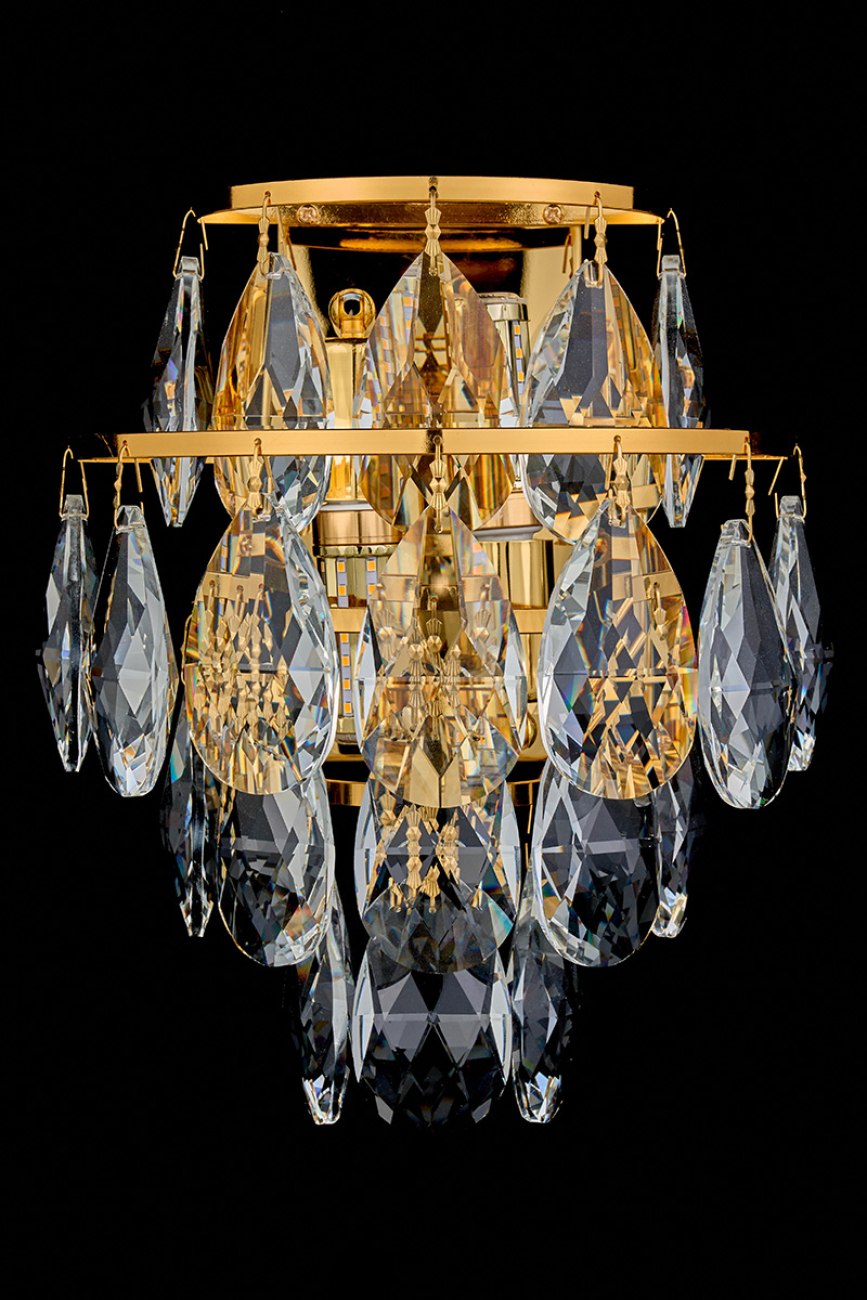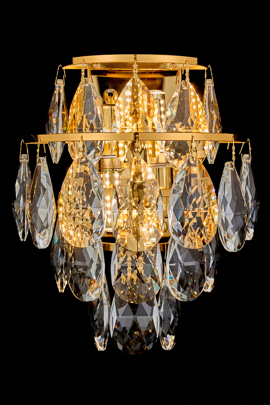 Допускается отличие страны-изготовителя, указанной в характеристиках. Линии производства могут находиться в нескольких государствах. Это не влияет на качество изготовления товара: все заводы данного бренда работают по общим стандартам, а готовые изделия проходят соответствующий контроль.Россия Коллекция Melanie ЦветЦвет арматуры Золото Цвет Золото Материал арматуры Металл гальванизированный Цвет плафона прозрачный Материал плафона Хрусталь РазмерыВысота (мм) 300 Длина (мм) 26 Ширина (мм) 155 ЭлектрикаКоличество ламп (шт) 2 Цоколь E14 Дополнительная информацияВес (Кг) 3.5 -
