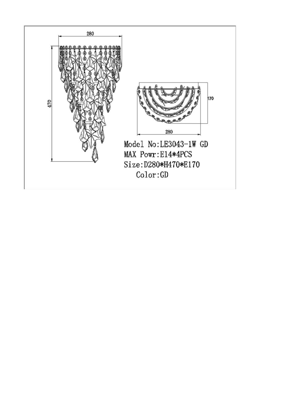 Допускается отличие страны-изготовителя, указанной в характеристиках. Линии производства могут находиться в нескольких государствах. Это не влияет на качество изготовления товара: все заводы данного бренда работают по общим стандартам, а готовые изделия проходят соответствующий контроль.Россия Коллекция Milena ЦветЦвет арматуры Золото Цвет Золото Материал арматуры Металл гальванизированный Цвет плафона золото Материал плафона Металл РазмерыВысота (мм) 470 Длина (мм) 28 Ширина (мм) 170 ЭлектрикаКоличество ламп (шт) 4 Цоколь E14 Дополнительная информацияВес (Кг) 3 -