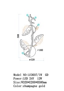 Допускается отличие страны-изготовителя, указанной в характеристиках. Линии производства могут находиться в нескольких государствах. Это не влияет на качество изготовления товара: все заводы данного бренда работают по общим стандартам, а готовые изделия проходят соответствующий контроль.Россия Коллекция Olivia ЦветЦвет арматуры Золото Цвет Золото Материал арматуры Металл гальванизированный Цвет плафона золото Материал плафона Металл РазмерыВысота (мм) 580 Длина (мм) 32 Ширина (мм) 200 ЭлектрикаЦоколь LED Мощность лампы (Вт) 12 Световой поток 720 Цветовая температура теплый (3000k) Дополнительная информацияВес (Кг) 2.2 -