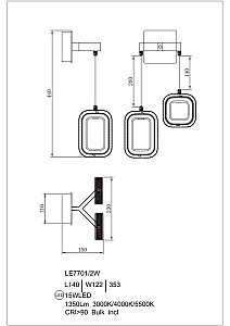 Допускается отличие страны-изготовителя, указанной в характеристиках. Линии производства могут находиться в нескольких государствах. Это не влияет на качество изготовления товара: все заводы данного бренда работают по общим стандартам, а готовые изделия проходят соответствующий контроль.Россия Коллекция Theona ЦветЦвет арматуры Серый Цвет Золото Материал арматуры Металл гальванизированный Цвет плафона золото Материал плафона Металл РазмерыВысота (мм) 440 Длина (мм) 23 Ширина (мм) 150 ЭлектрикаЦоколь LED Мощность лампы (Вт) 15 Световой поток 1350 Цветовая температура нейтральный (4000k) Дополнительная информацияВес (Кг) 1.6 -