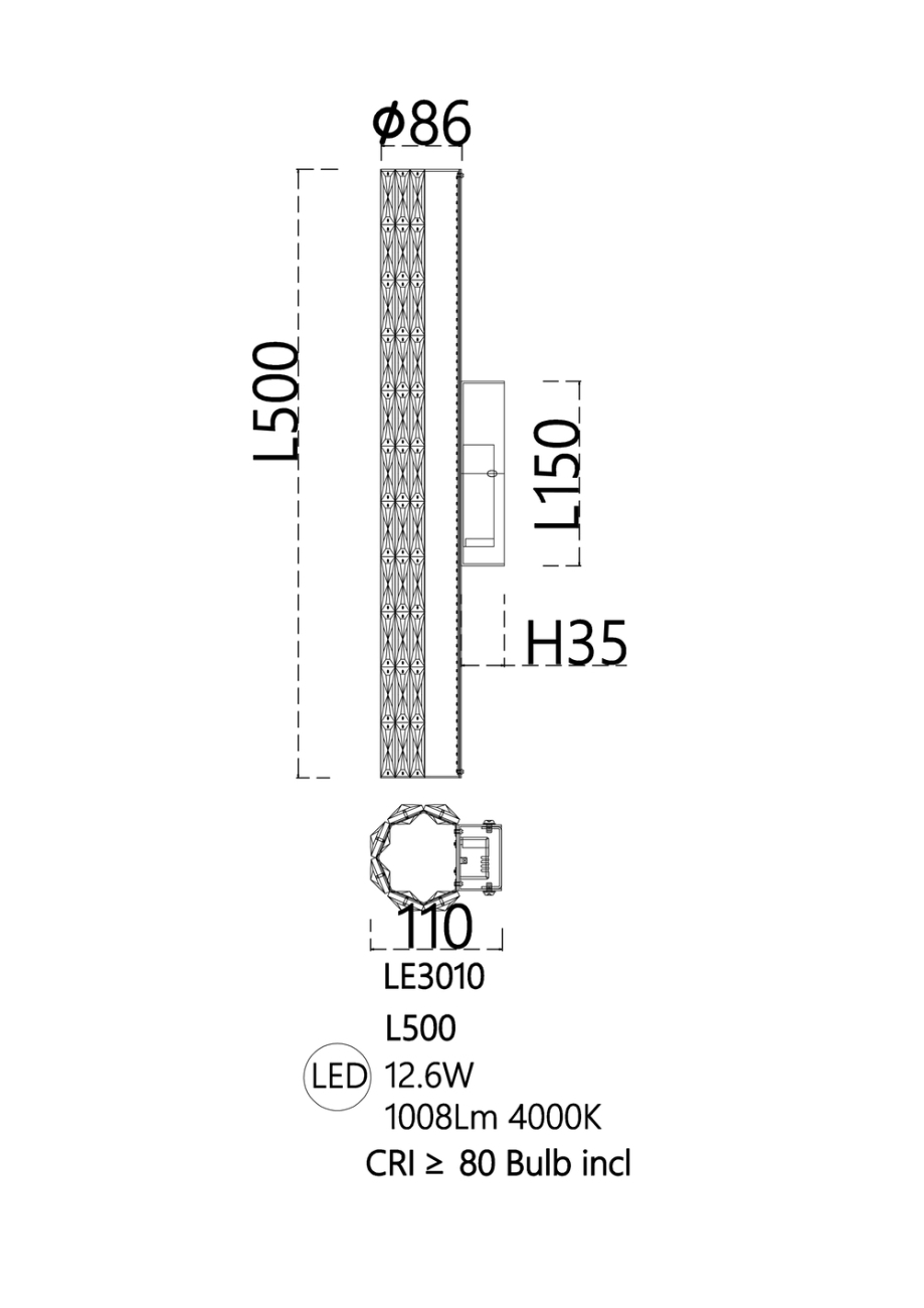 Допускается отличие страны-изготовителя, указанной в характеристиках. Линии производства могут находиться в нескольких государствах. Это не влияет на качество изготовления товара: все заводы данного бренда работают по общим стандартам, а готовые изделия проходят соответствующий контроль.Россия Коллекция Celine ЦветЦвет арматуры Хром Цвет Хром Материал арматуры Металл гальванизированный Цвет плафона белый матовый Материал плафона Камень РазмерыВысота (мм) 500 Длина (мм) 11 Диаметр (мм) 86 Ширина (мм) 86 ЭлектрикаЦоколь LED Мощность лампы (Вт) 12.6 Световой поток 1008 Цветовая температура нейтральный (4000k) Дополнительная информацияВес (Кг) 2.7 -