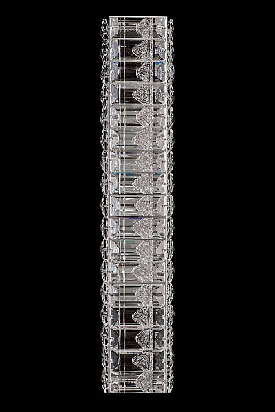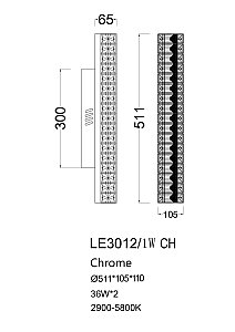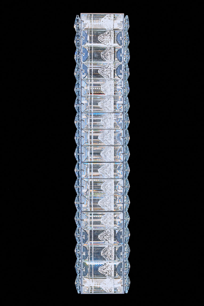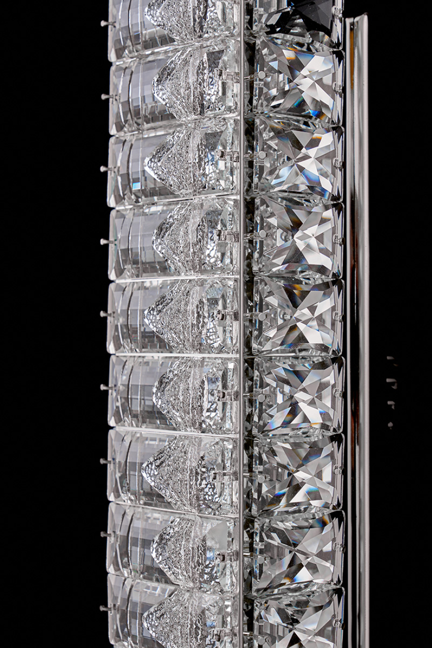 Допускается отличие страны-изготовителя, указанной в характеристиках. Линии производства могут находиться в нескольких государствах. Это не влияет на качество изготовления товара: все заводы данного бренда работают по общим стандартам, а готовые изделия проходят соответствующий контроль.Россия Коллекция Delaina ЦветЦвет арматуры Хром Цвет Хром Материал арматуры Металл гальванизированный Цвет плафона прозрачный Материал плафона Хрусталь РазмерыВысота (мм) 511 Длина (мм) 11 Ширина (мм) 105 ЭлектрикаЦоколь LED Мощность лампы (Вт) 2*36 Световой поток 3096 Цветовая температура холодный (5800k) Дополнительная информацияВес (Кг) 3 -