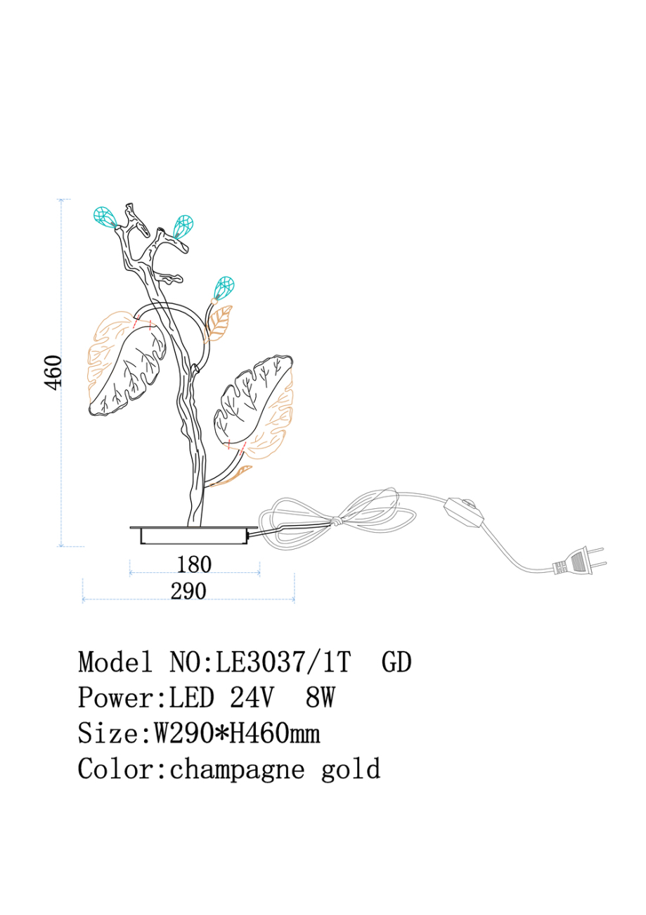 Допускается отличие страны-изготовителя, указанной в характеристиках. Линии производства могут находиться в нескольких государствах. Это не влияет на качество изготовления товара: все заводы данного бренда работают по общим стандартам, а готовые изделия проходят соответствующий контроль.Россия Коллекция Olivia ЦветЦвет арматуры Золото Цвет Золото Материал арматуры Металл гальванизированный Цвет плафона золото Материал плафона Металл РазмерыВысота (мм) 460 Длина (мм) 29 Ширина (мм) 290 ЭлектрикаЦоколь LED Мощность лампы (Вт) 8 Световой поток 480 Цветовая температура теплый (3000k) Дополнительная информацияВес (Кг) 3.4 -