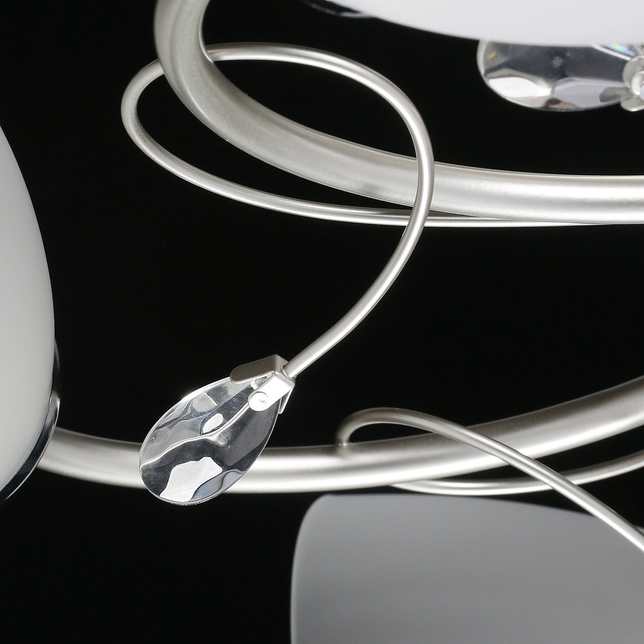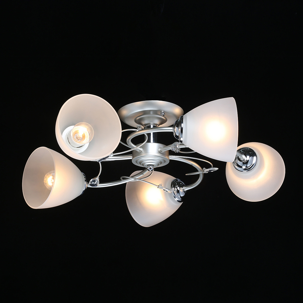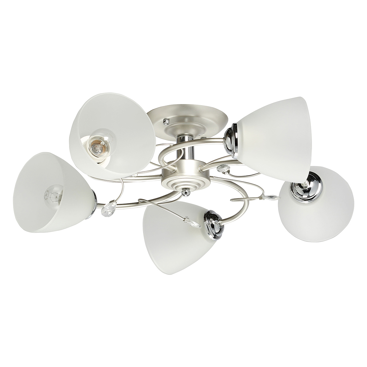 Компактная высота идеальна для стандартной высоты потолка.Плафоны матового белого стекла обеспечивают мягкое освещение.Хрустальный декор создает дополнительные акценты.Актуальная комбинация металлов цвета перламутрового серебра и глянцевого хрома.