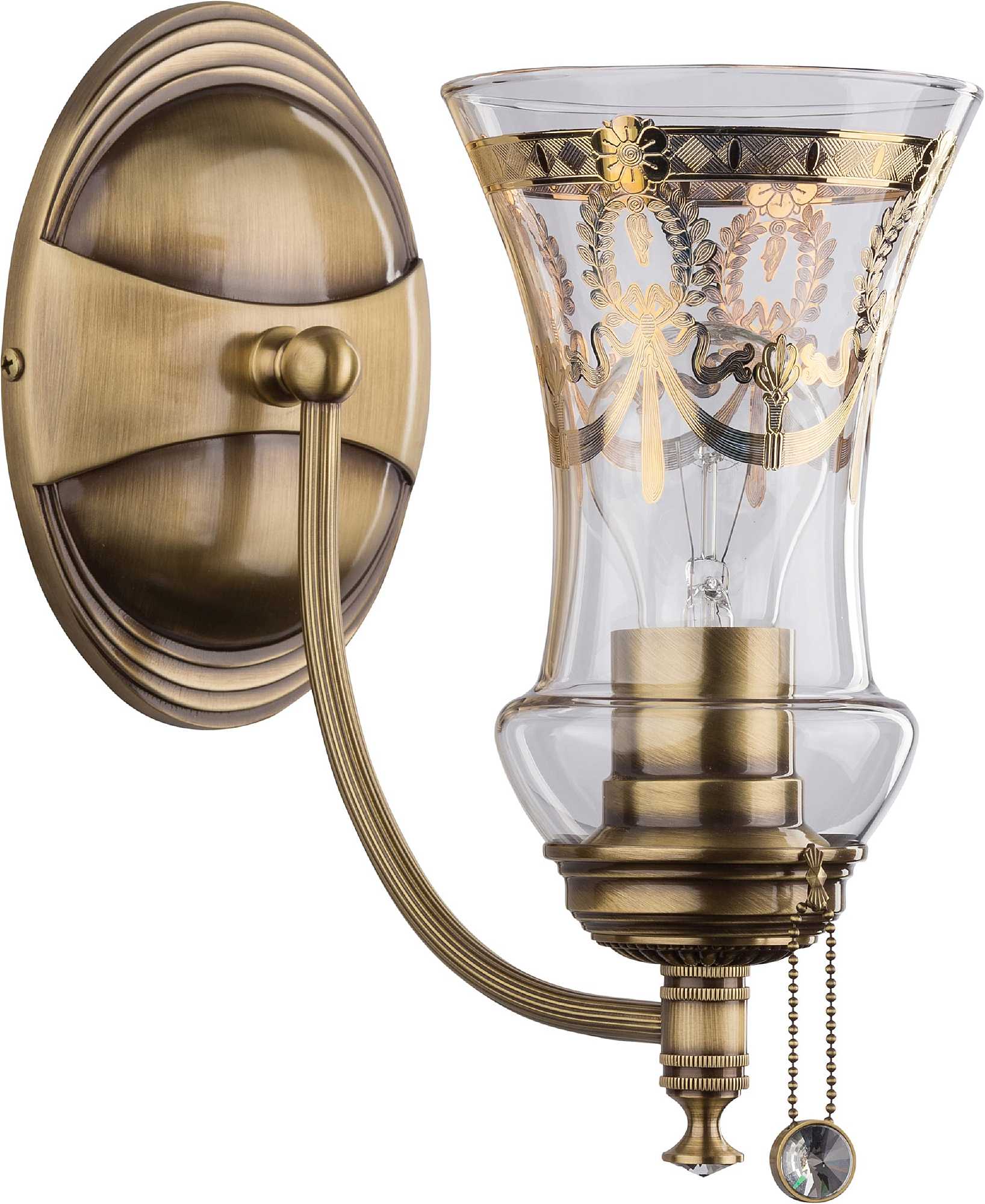 Бра NIC-K-1 (P) - компактная модель в патине с тканевым абажуром. Отлично подходит для акцентного или ночного освещения, в спальне, кабинете или прихожей.