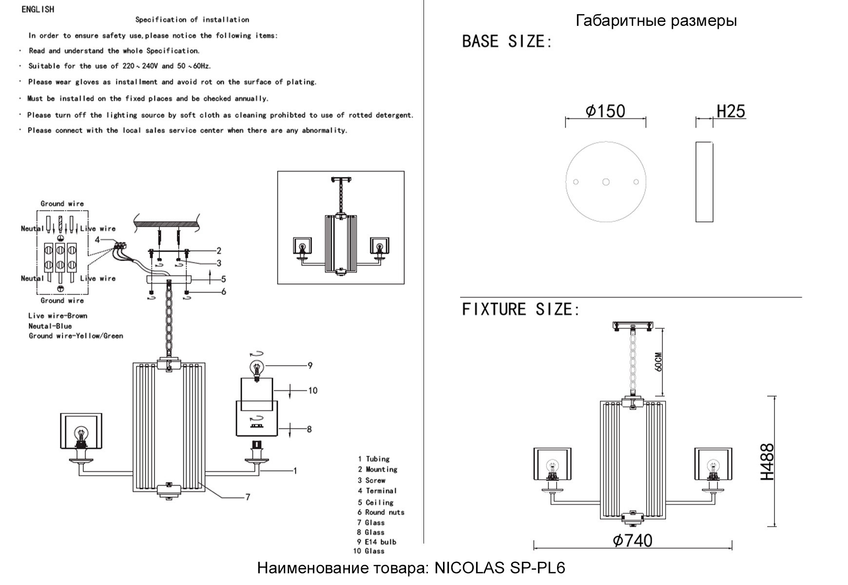 Допускается отличие страны-изготовителя, указанной в характеристиках. Линии производства могут находиться в нескольких государствах. Это не влияет на качество изготовления товара: все заводы данного бренда работают по общим стандартам, а готовые изделия проходят соответствующий контроль.Испания Коллекция Nicolas ЦветЦвет арматуры Золото, Прозрачный Цвет Золото Материал арматуры Стекло, Металл Цвет плафона Белый, прозрачный Материал декора Стекло Материал плафона Стекло РазмерыВысота (мм) 1088 Диаметр (мм) 740 Высота минимальная (мм) 488 Ширина (мм) 740 ЭлектрикаКоличество ламп (шт) 6 Цоколь E14 Мощность лампы (Вт) 60 Дополнительная информацияСтепень защиты (IP) 20 Тип подвеса На цепи -
