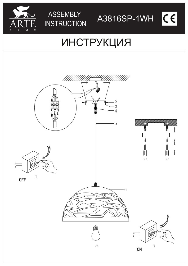 Производитель Arte Lamp Артикул A3816SP-1WH Страна